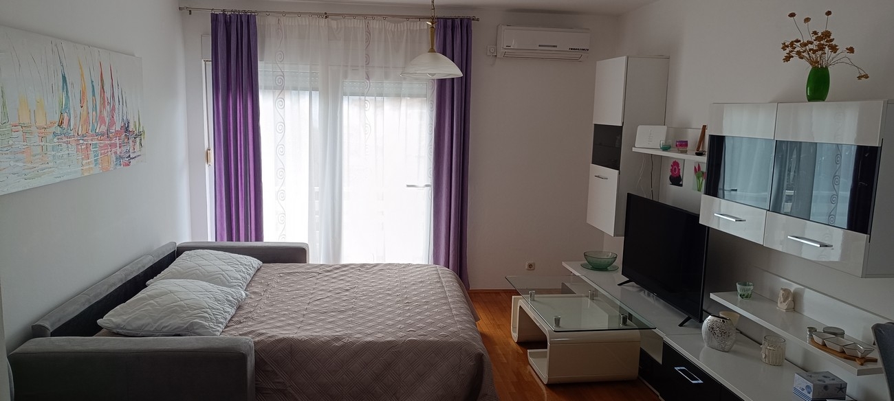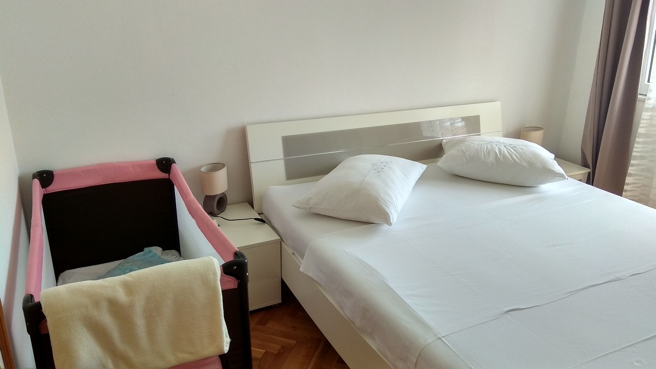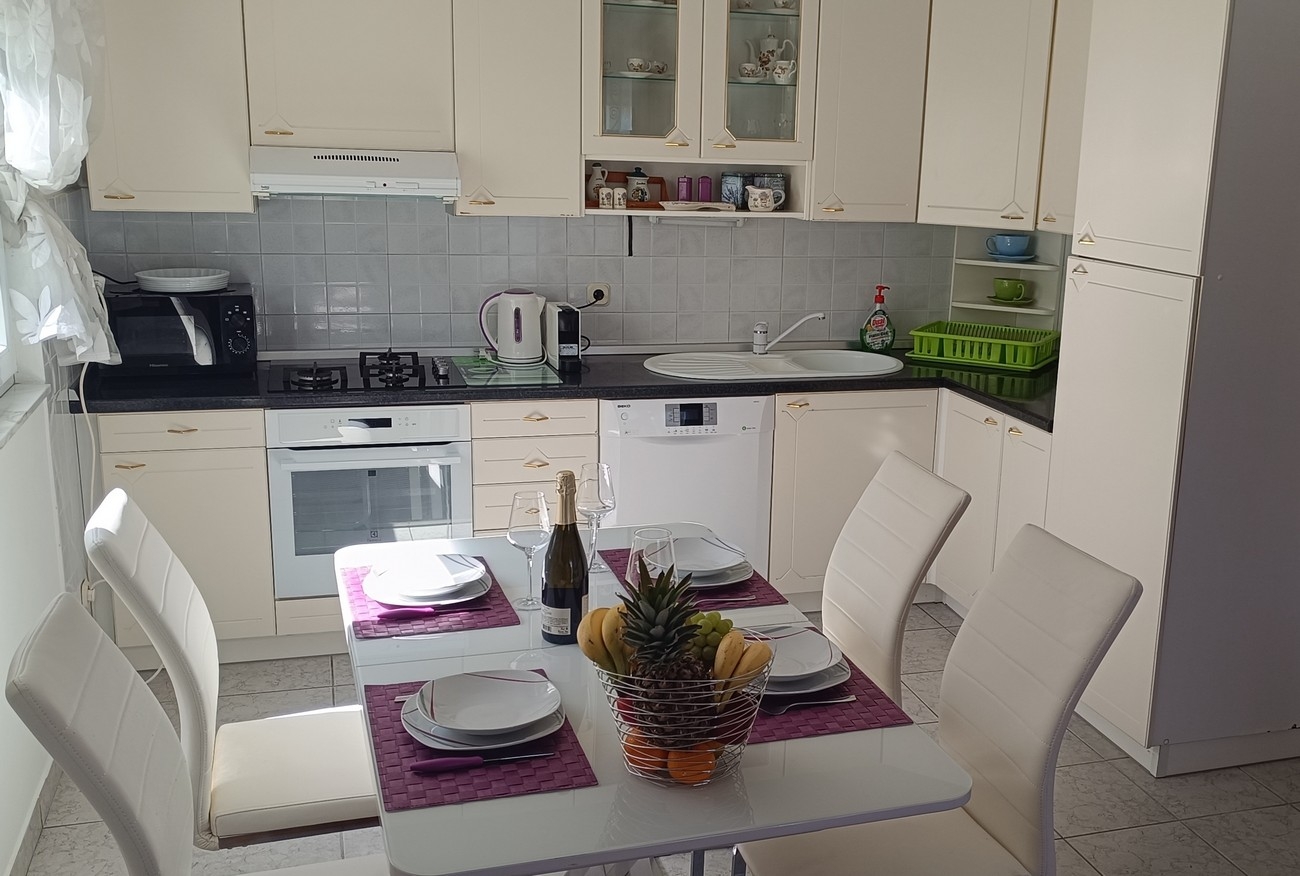Apartment can accommodate 6 guests. Beds are situated in 2 sleeping rooms, but also in the living room, within 77m2. Guests can use a private terrace to enjoy the warm summer evenings. Food can be prepared using barbecue which is shared with other guests too. This accommodation unit welcomes pets at an additional charge. INCLUDED IN THE PRICE: tourist tax, final cleaning, air-conditioning, parking, internet, bicycle, iron, ironing board, hairdryer. OBLIGATORY ADDITIONAL COSTS: short stay fee (surcharge depending on a number of booked nights: 30% - 1, 20% - 2, 10% - 3). OPTIONAL ADDITIONAL COSTS: laundry (€2.00 washing), boat mooring (€10.00 per night), pets (€8.00 per night). The availability of additional services for your chosen dates of stay, as well as their prices (if none are listed) must be checked ahead of time. Any additional services not shown in the price calculation are payable directly to the property owner and only if used by the visitor. Discounts to the base price: free day 21=19 (for reservations of 21 or more days you get 2 free days for the stay until 31122026).