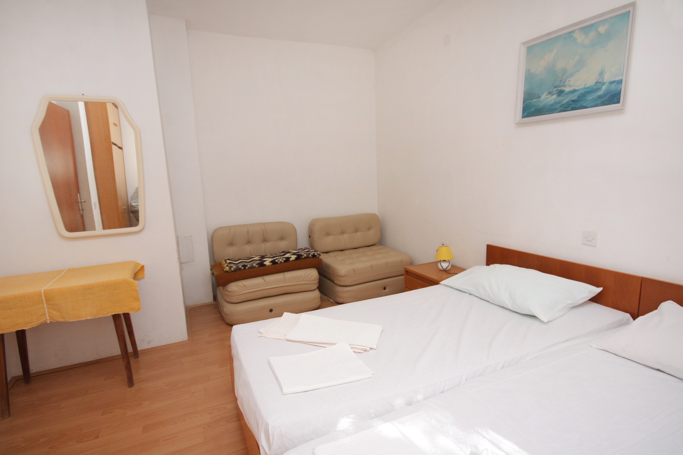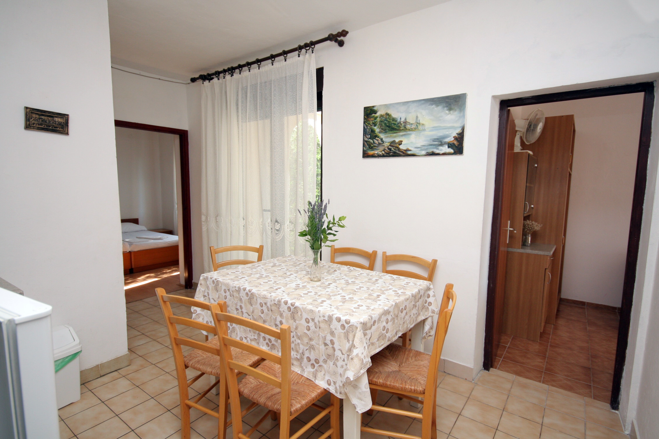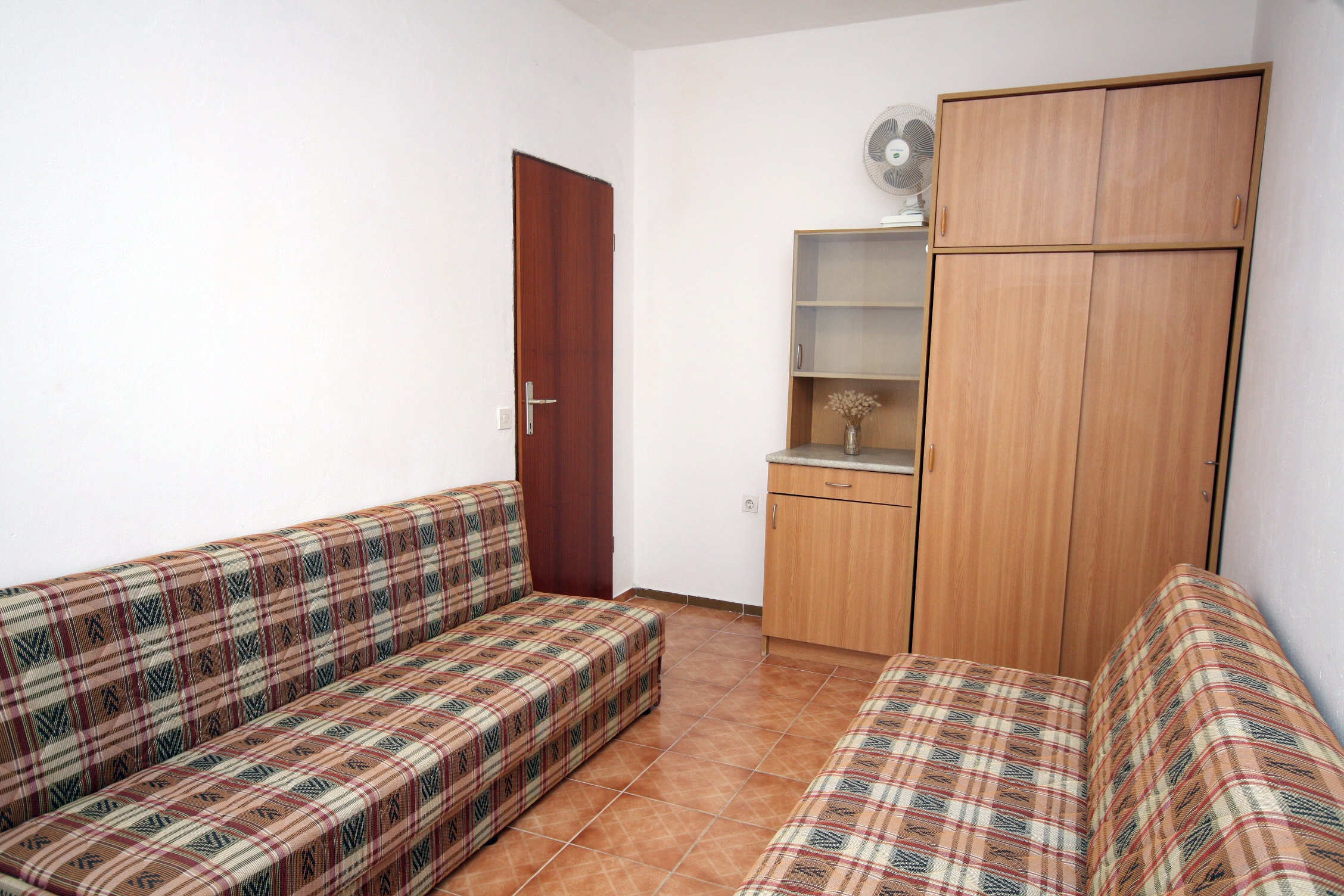 Apartment can accommodate 6 guests. Beds are situated in 2 sleeping rooms, but also in the living room, within 54m2. Guests can use a private terrace to enjoy the warm summer evenings. The apartment offers the sea view. This accommodation unit welcomes pets at an additional charge. INCLUDED IN THE PRICE: tourist tax, final cleaning, parking, internet, hairdryer. OBLIGATORY ADDITIONAL COSTS: short stay fee (surcharge depending on a number of booked nights: 30% - 1, 20% - 2, 10% - 3). OPTIONAL ADDITIONAL COSTS: air-conditioning (€7.00 per night), pets (€15.00 per night). The availability of additional services for your chosen dates of stay, as well as their prices (if none are listed) must be checked ahead of time. Any additional services not shown in the price calculation are payable directly to the property owner and only if used by the visitor.