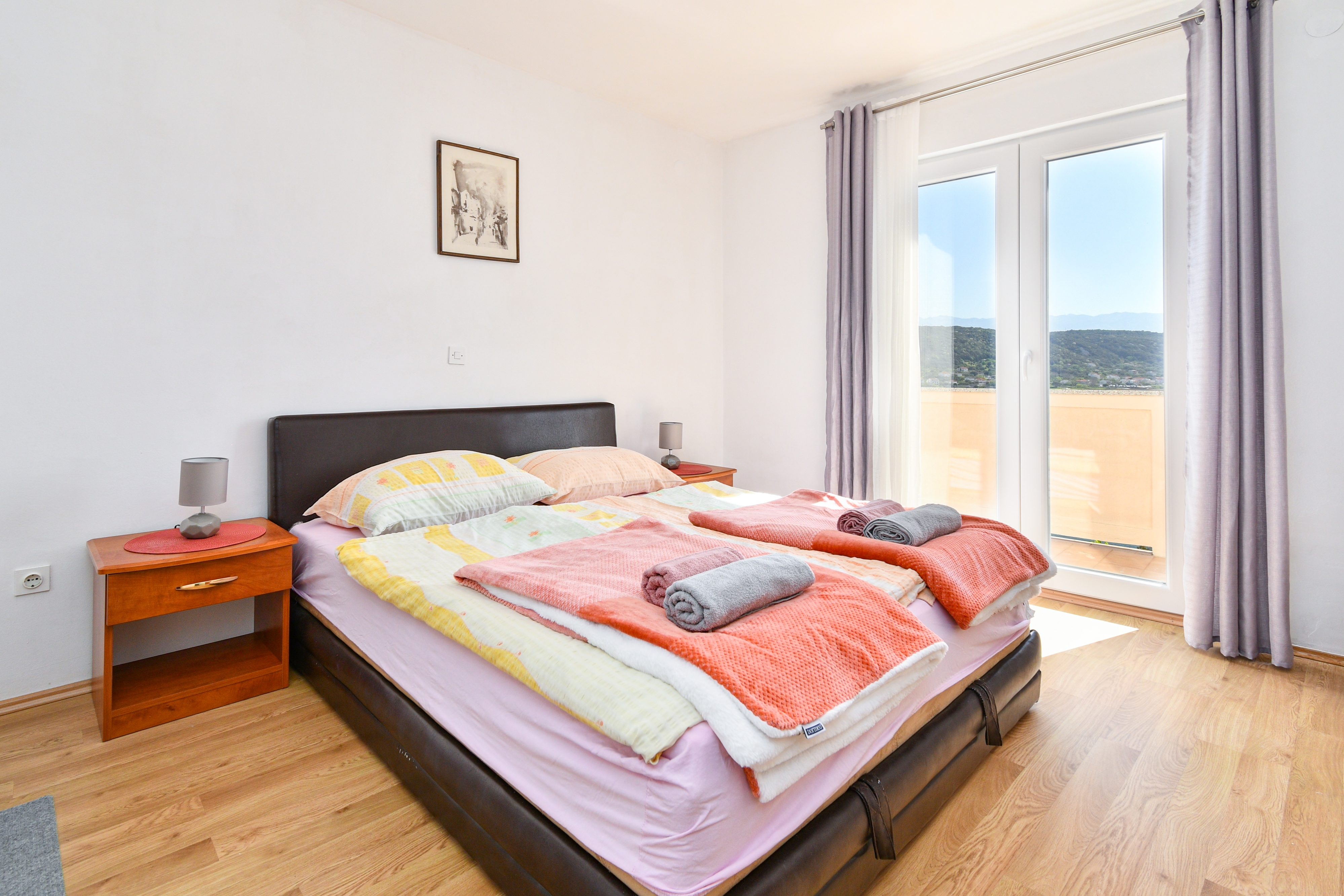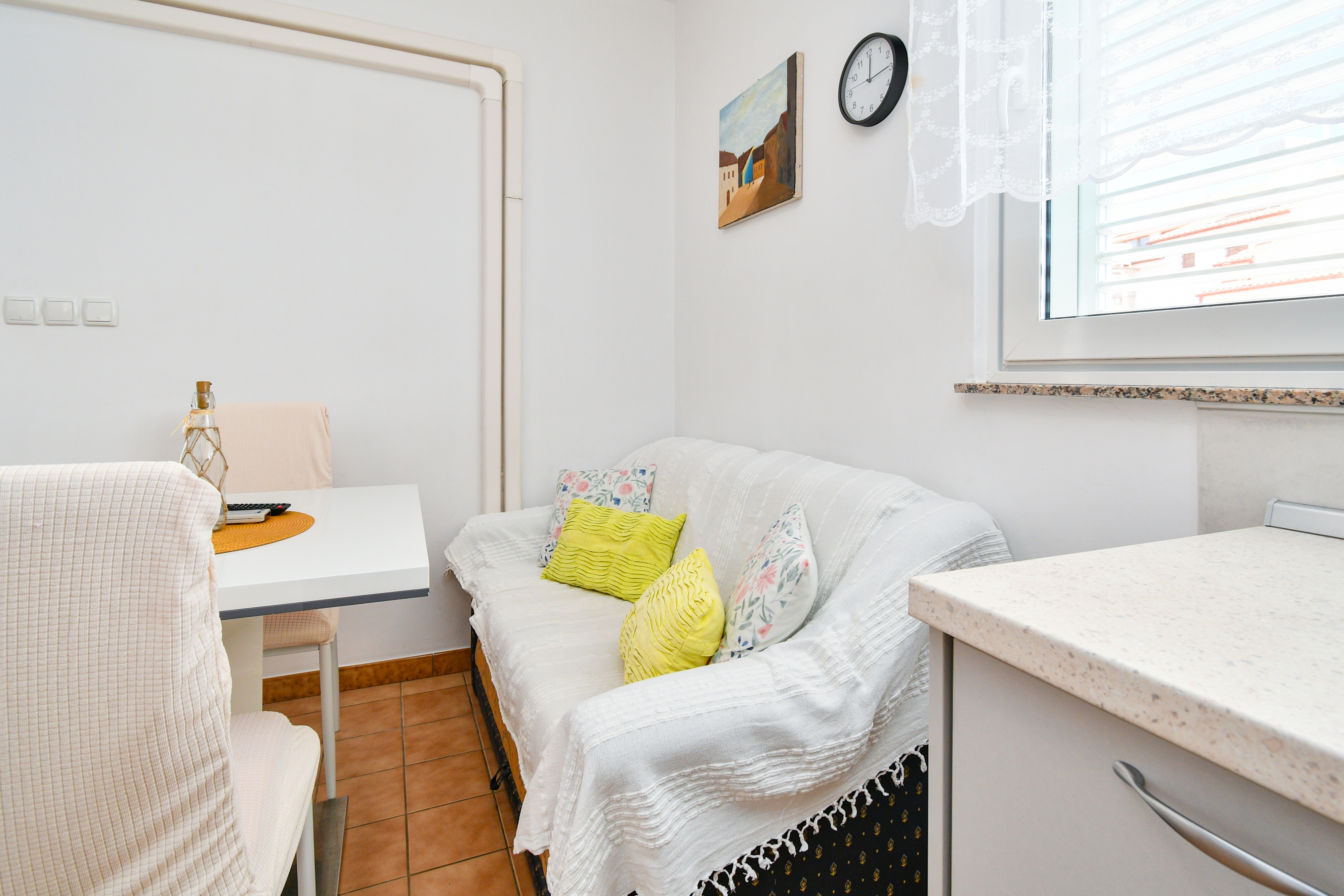 Apartment can accommodate 4 guests. Beds are situated in 2 sleeping rooms, within 48m2. Guests can use a private terrace to enjoy the warm summer evenings. The apartment offers the sea view. Food can be prepared using barbecue which is shared with other guests too. This accommodation unit welcomes pets at an additional charge. Some of the rooms of the accommodation unit are not connected with the rest of the unit. INCLUDED IN THE PRICE: tourist tax, final cleaning, air-conditioning, parking, internet, boat mooring, sunchairs. OBLIGATORY ADDITIONAL COSTS: short stay fee (surcharge depending on a number of booked nights: 30% - 1, 20% - 2, 10% - 3). OPTIONAL ADDITIONAL COSTS: breakfast (€10.00, a 50% discount for children aged 4 to 12 years, Children up to age 4 free of charge), pets (€7.00 per night). The availability of additional services for your chosen dates of stay, as well as their prices (if none are listed) must be checked ahead of time. Any additional services not shown in the price calculation are payable directly to the property owner and only if used by the visitor.