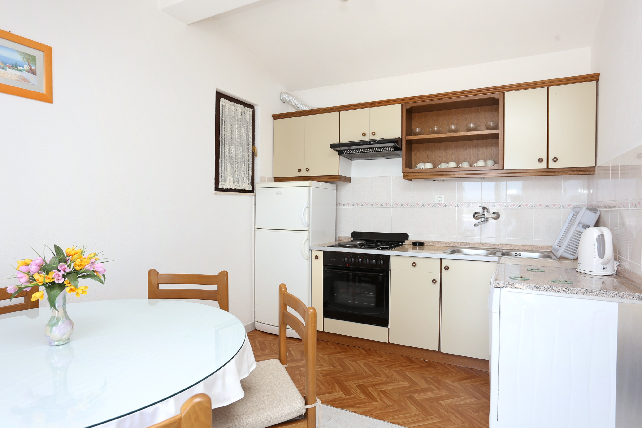 Apartment can accommodate 7 guests. Beds are situated in 3 sleeping rooms, within 56m2. Guests can use a private terrace to enjoy the warm summer evenings. The apartment offers the sea view. Food can be prepared using barbecue which is shared with other guests too. INCLUDED IN THE PRICE: tourist tax, final cleaning, parking, internet, boat mooring. OBLIGATORY ADDITIONAL COSTS: short stay fee (surcharge depending on a number of booked nights: 30% - 1, 20% - 2, 10% - 3). OPTIONAL ADDITIONAL COSTS: air-conditioning (€10.00 per night), laundry (€5.00 washing). The availability of additional services for your chosen dates of stay, as well as their prices (if none are listed) must be checked ahead of time. Any additional services not shown in the price calculation are payable directly to the property owner and only if used by the visitor.