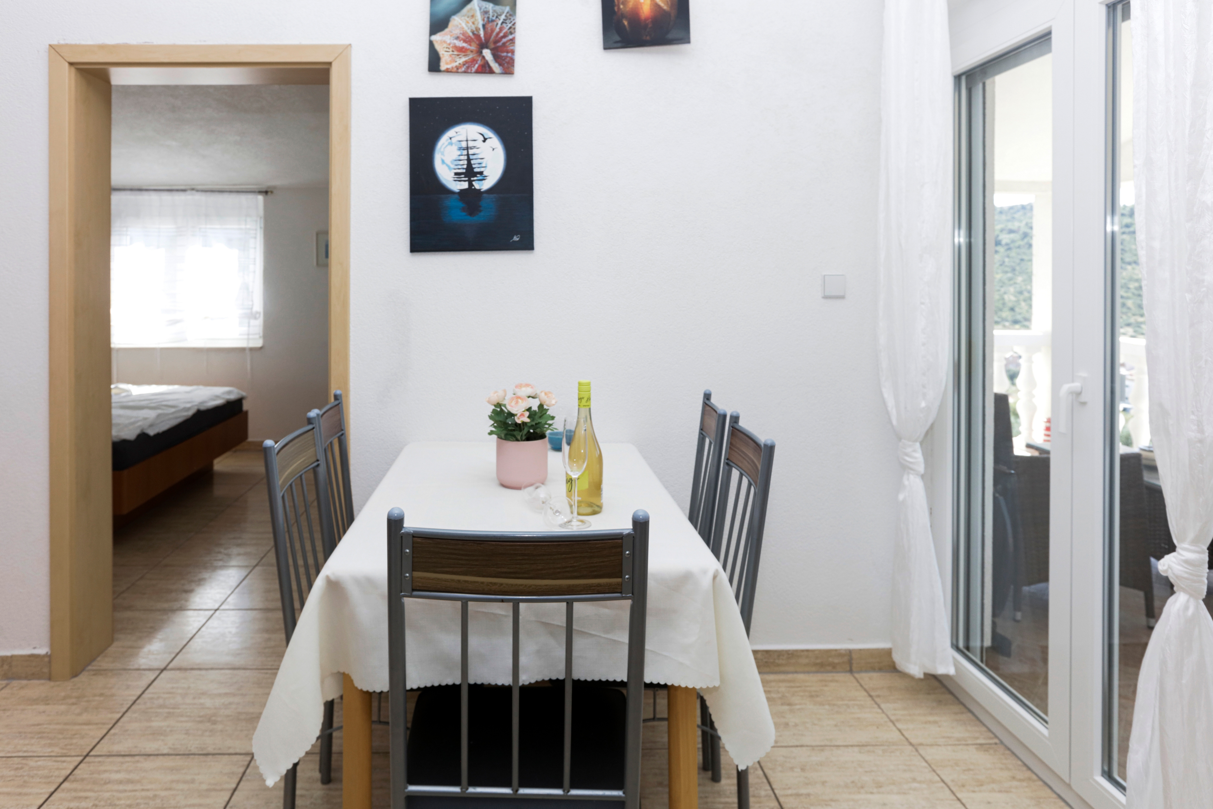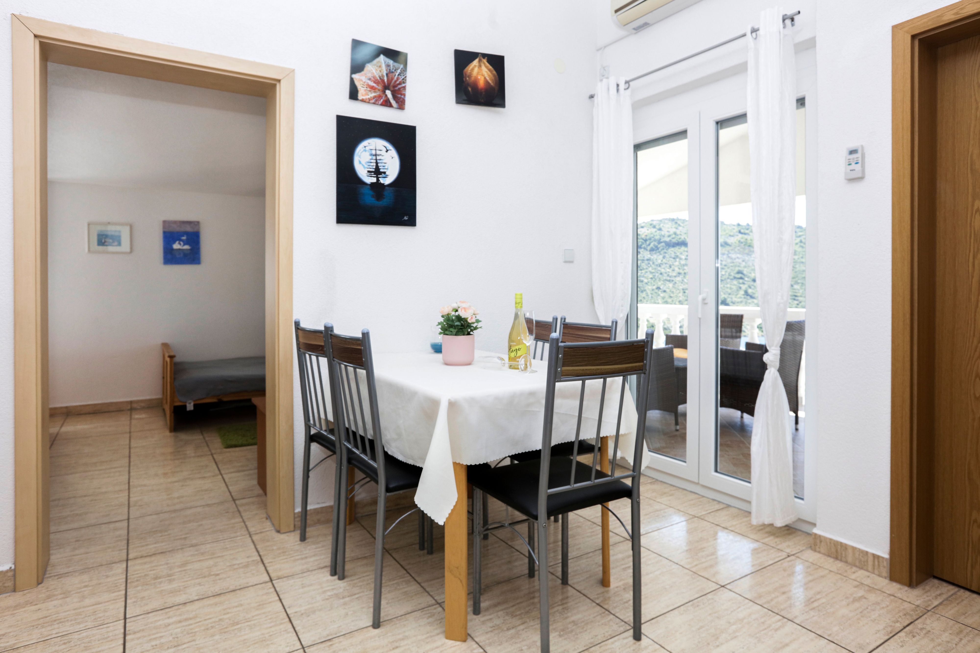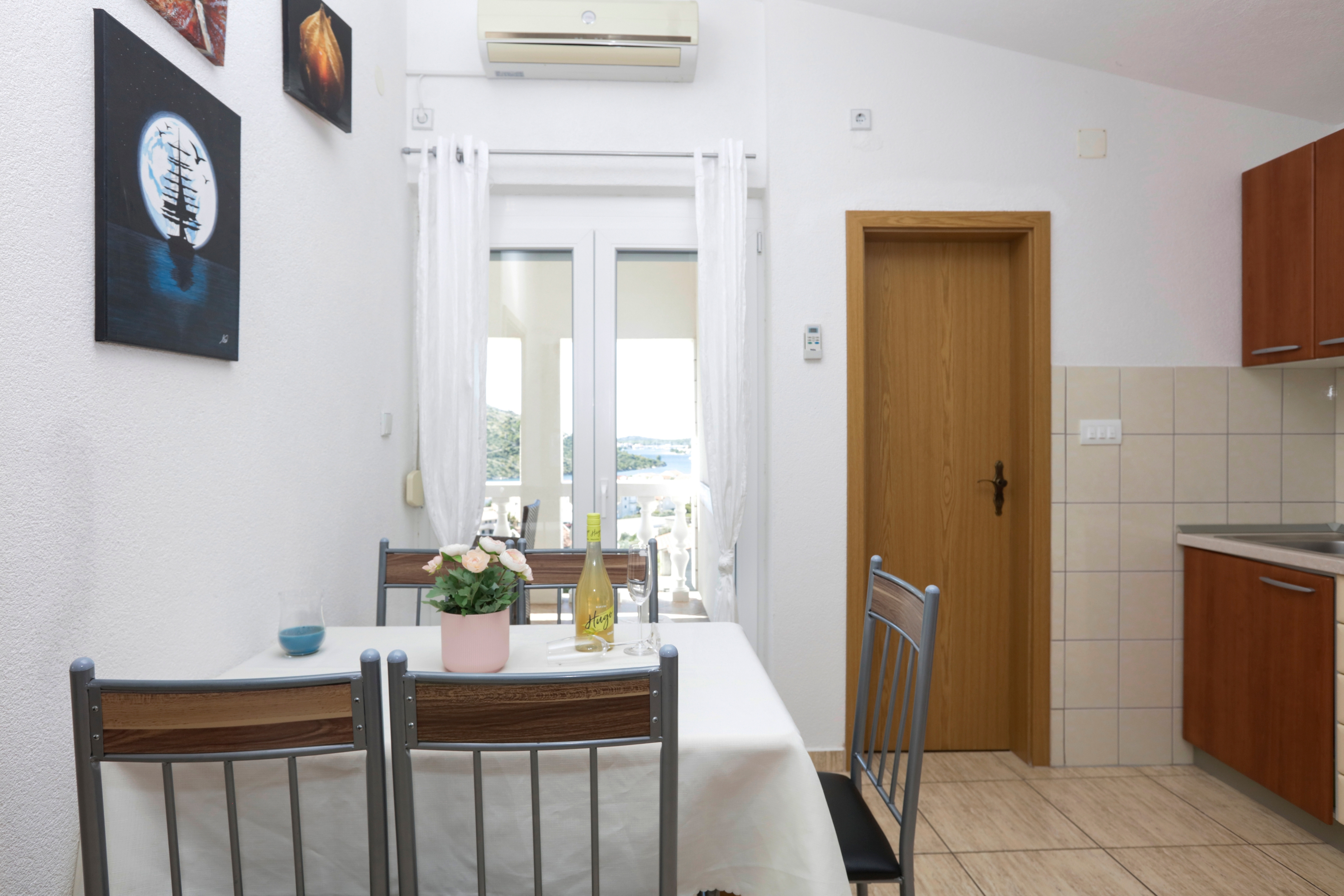 Apartment can accommodate 4 guests. Beds are situated in 1 sleeping rooms, but also in the living room, within 35m2. Guests can use a private terrace to enjoy the warm summer evenings. The apartment offers the sea view. Food can be prepared using barbecue which is shared with other guests too. Shared pool is on disposal during stay. INCLUDED IN THE PRICE: tourist tax, final cleaning, air-conditioning, pool, parking, internet, baby cot, iron, ironing board, hairdryer, sunshade. The availability of additional services for your chosen dates of stay, as well as their prices (if none are listed) must be checked ahead of time. Any additional services not shown in the price calculation are payable directly to the property owner and only if used by the visitor.