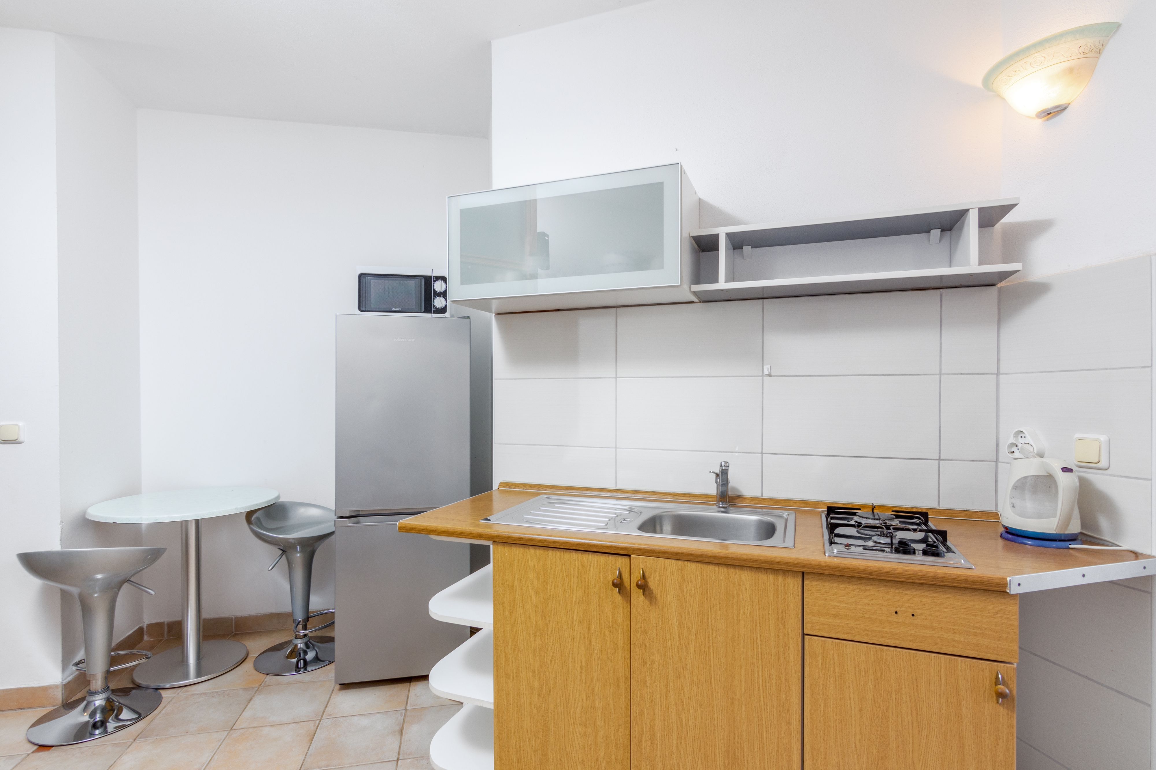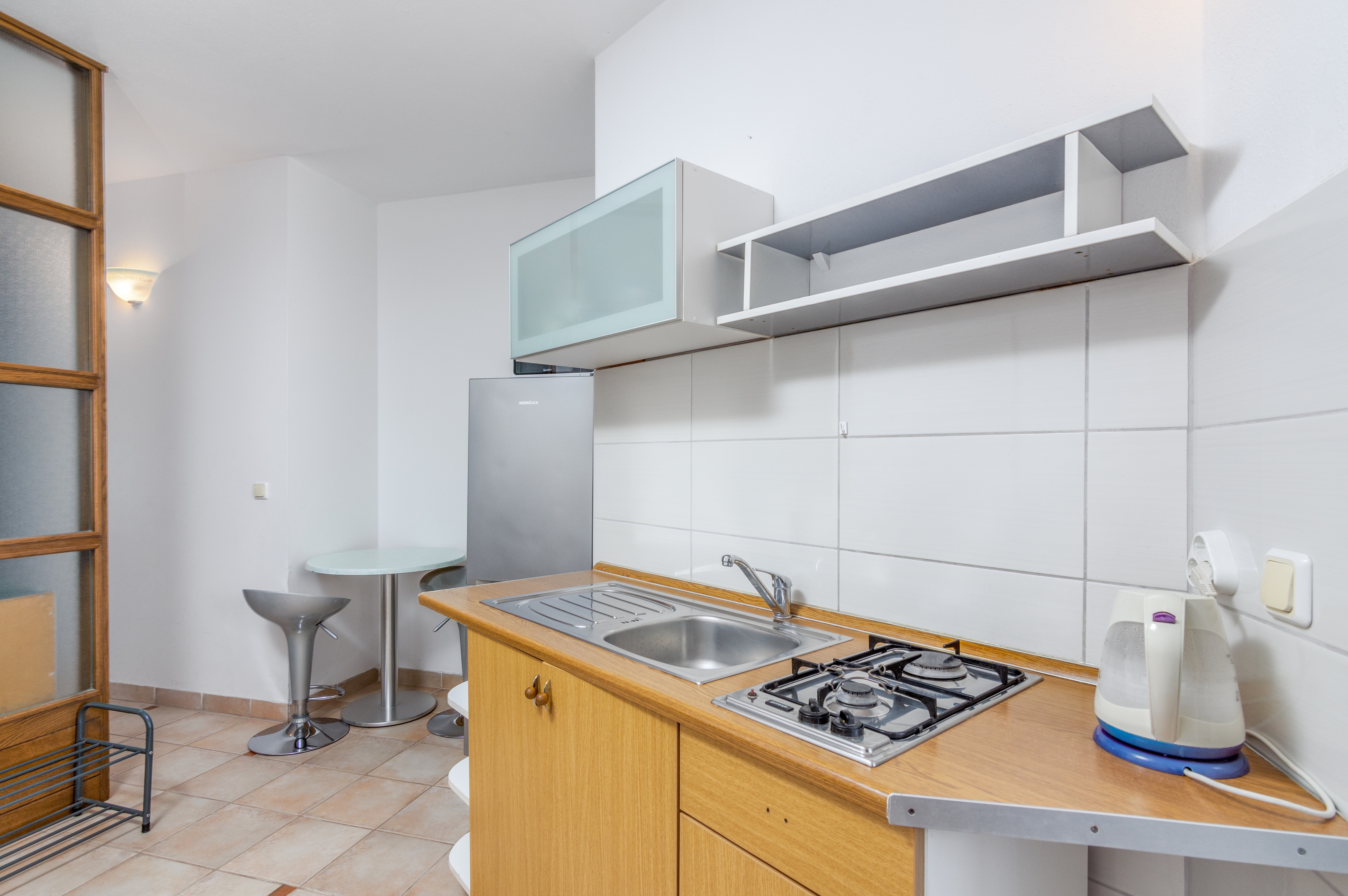 Studio flat can accommodate 3 guests. Beds are situated in 1 sleeping rooms, but also in the living room, within 24m2. Guests can use a private terrace to enjoy the warm summer evenings. INCLUDED IN THE PRICE: tourist tax, final cleaning, air-conditioning, internet, laundry, iron, ironing board, hairdryer. OBLIGATORY ADDITIONAL COSTS: short stay fee (surcharge depending on a number of booked nights: 30% - 1, 20% - 2, 10% - 3). The availability of additional services for your chosen dates of stay, as well as their prices (if none are listed) must be checked ahead of time. Any additional services not shown in the price calculation are payable directly to the property owner and only if used by the visitor.