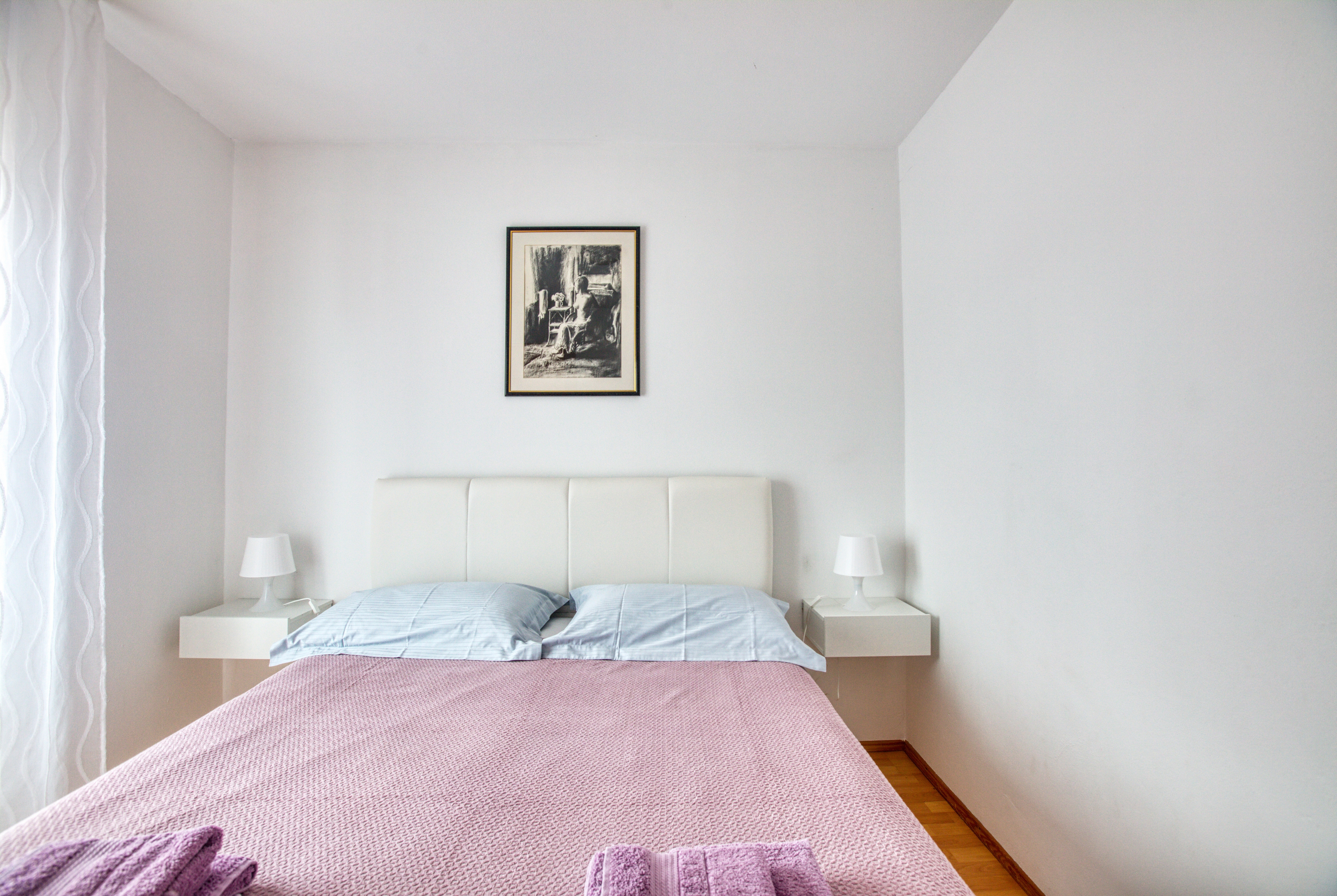 Apartment can accommodate 4 guests. Beds are situated in 1 sleeping rooms, but also in the living room, within 36m2. Guests can use a private terrace to enjoy the warm summer evenings. Food can be prepared using barbecue which is shared with other guests too. INCLUDED IN THE PRICE: tourist tax, final cleaning, air-conditioning, parking, internet, bicycle, baby cot, iron, ironing board, hairdryer. OBLIGATORY ADDITIONAL COSTS: short stay fee (surcharge depending on a number of booked nights: 30% - 1, 20% - 2, 10% - 3). OPTIONAL ADDITIONAL COSTS: additional bed (€6.00 per night). The availability of additional services for your chosen dates of stay, as well as their prices (if none are listed) must be checked ahead of time. Any additional services not shown in the price calculation are payable directly to the property owner and only if used by the visitor. Discounts to the base price: free day 14=13 (for reservations of 14 or more days you get one free day for the stay until 31122026).