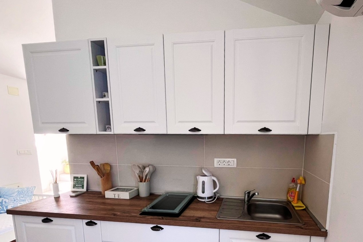 Studio flat can accommodate 2 guests. Beds are situated in 1 sleeping rooms, within 23m2. Guests can use a private terrace to enjoy the warm summer evenings. The studio offers the sea view. Food can be prepared using barbecue which is shared with other guests too. INCLUDED IN THE PRICE: tourist tax, final cleaning, air-conditioning, parking, internet, laundry, baby cot, iron, ironing board, hairdryer, sunchairs. OPTIONAL ADDITIONAL COSTS: boat mooring (€10.00 per night). The availability of additional services for your chosen dates of stay, as well as their prices (if none are listed) must be checked ahead of time. Any additional services not shown in the price calculation are payable directly to the property owner and only if used by the visitor. Discounts to the base price: free day 21=19 (for reservations of 21 or more days you get 2 free days for the stay until 31122026).