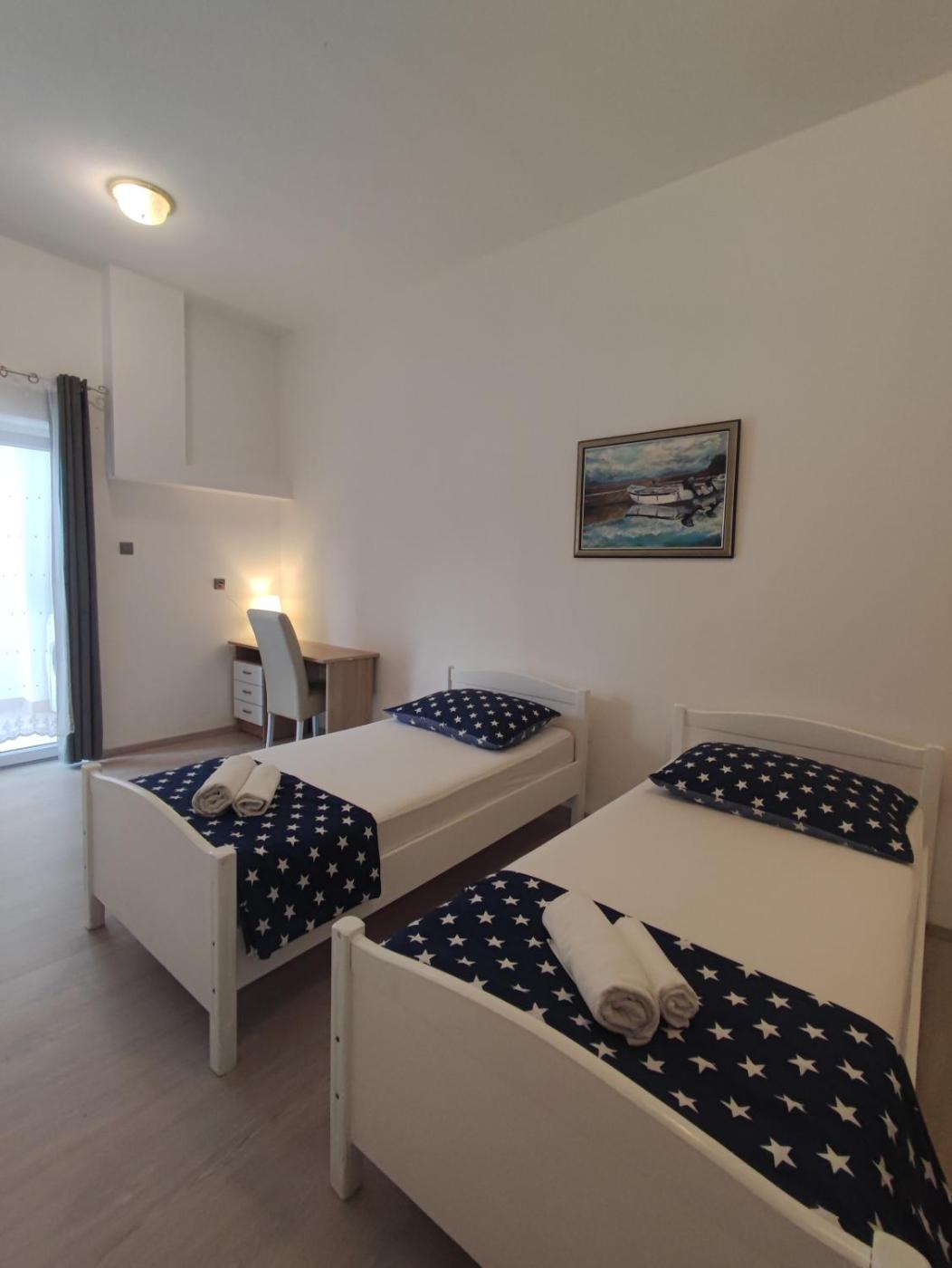 Two-Bedroom Apartment. This apartments special feature is the fireplace. Featuring a private entrance, this spacious apartment also comprises 1 living room, 2 separate bedrooms and 1 bathroom with a bath. Guests will find a stovetop, a refrigerator, a dishwasher and kitchenware in the kitchen. The apartment also provides guests with a barbecue. The air-conditioned apartment provides a flat-screen TV with satellite channels, soundproof walls, a tea and coffee maker, a seating area as well as sea views. The unit offers 4 beds.