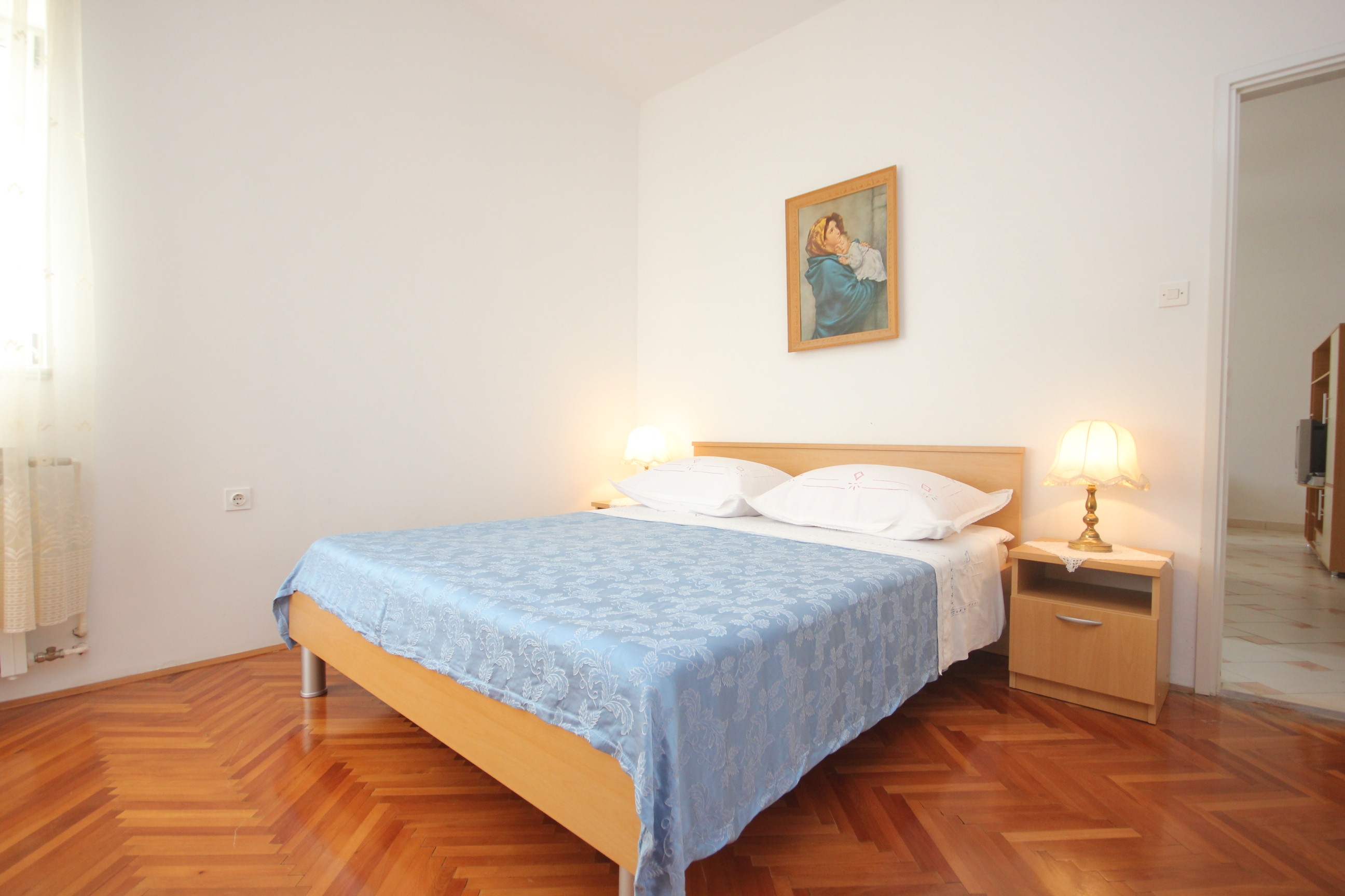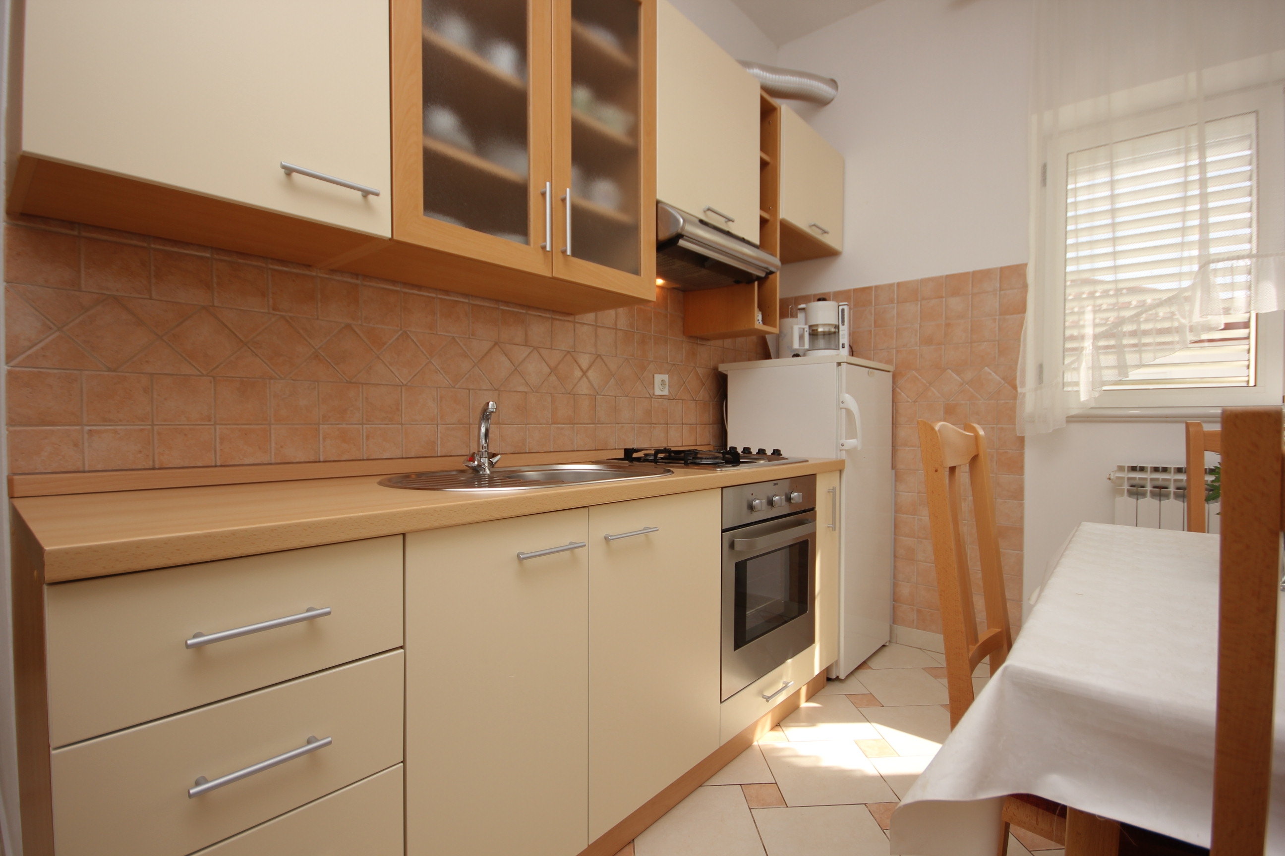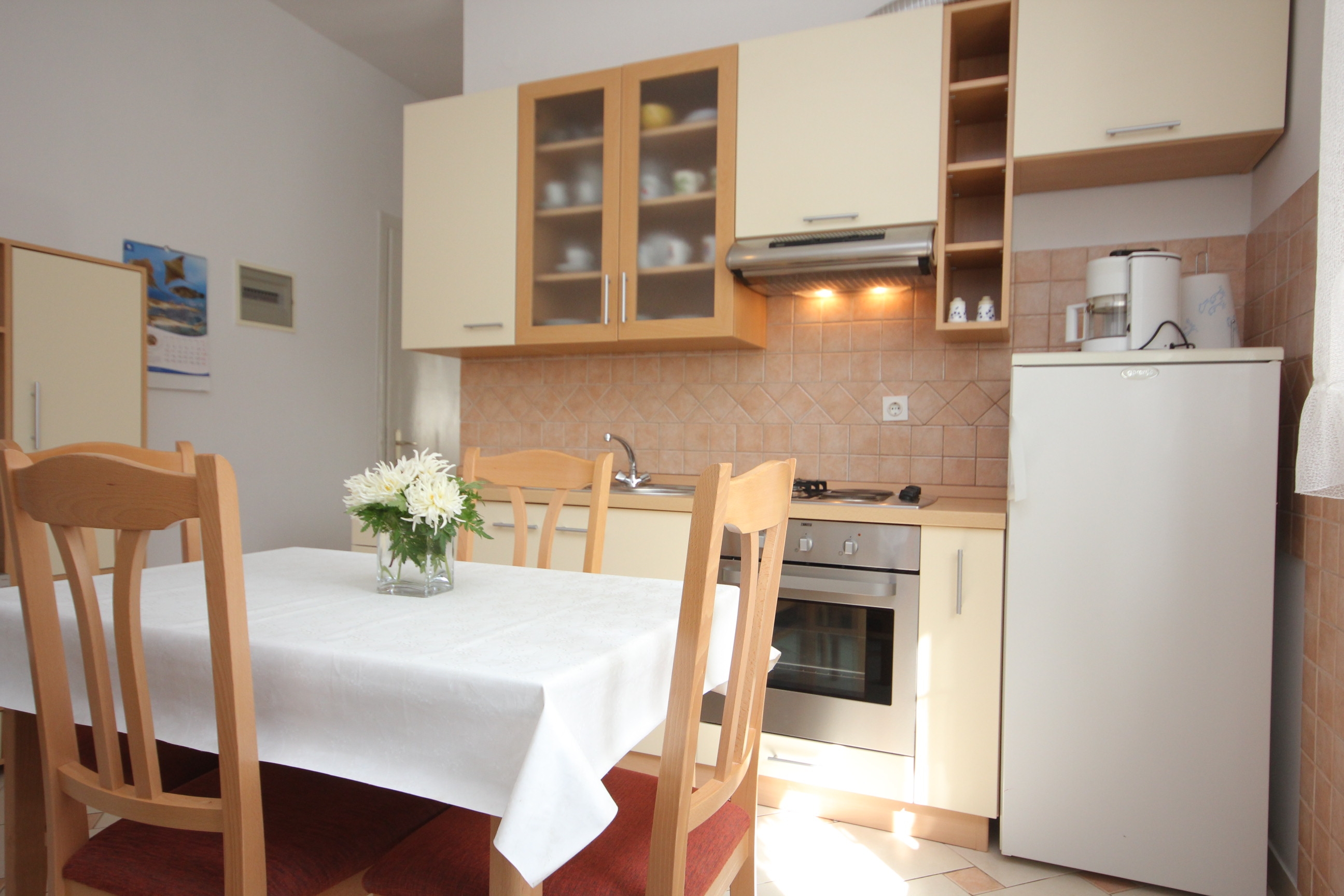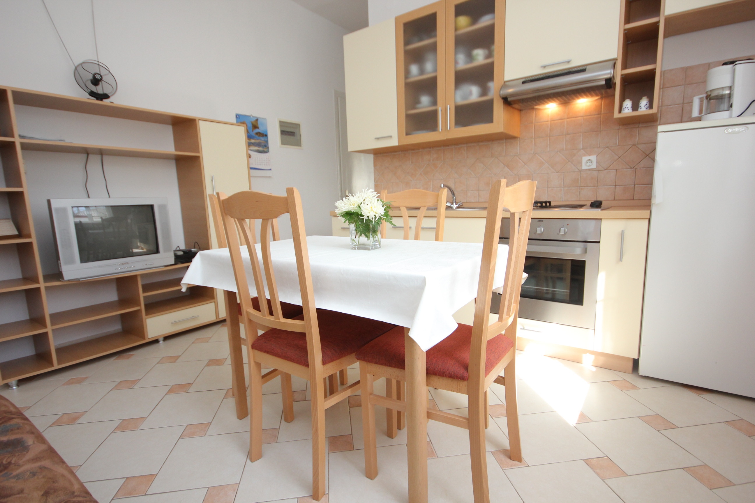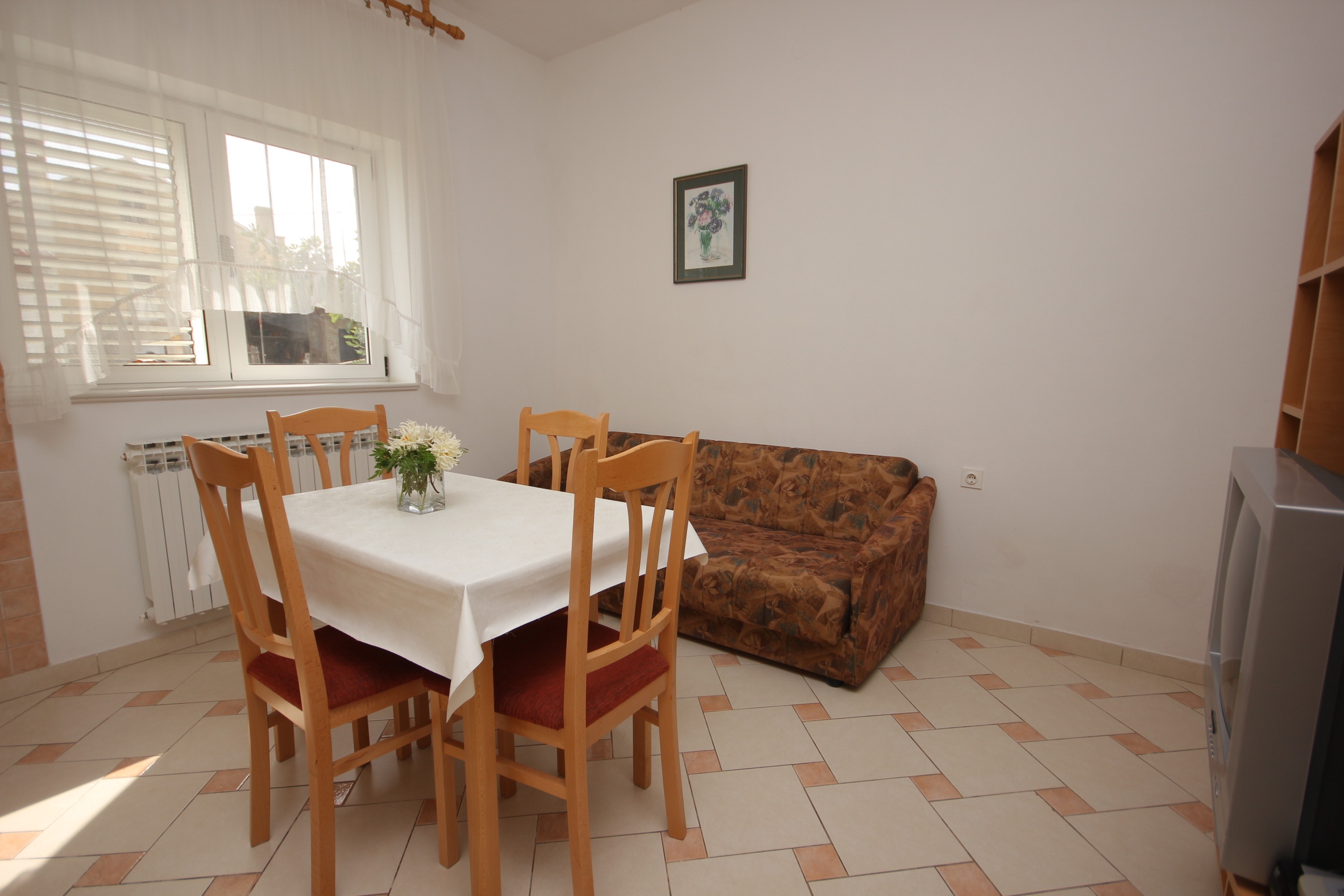 Apartment can accommodate 3 guests. Beds are situated in 1 sleeping rooms, but also in the dining room, within 34m2. Guests can use a private terrace to enjoy the warm summer evenings. The apartment offers the sea view. Food can be prepared using barbecue which is shared with other guests too. This accommodation unit welcomes pets at an additional charge. INCLUDED IN THE PRICE: tourist tax, final cleaning, air-conditioning, parking, internet, baby cot, iron, ironing board, hairdryer, portable barbecue, sunshade, sunchairs. OPTIONAL ADDITIONAL COSTS: central heating (€5.00 per night), laundry (€10.00 washing), boat mooring (€5.00 per night), pets (€5.00 per night). The availability of additional services for your chosen dates of stay, as well as their prices (if none are listed) must be checked ahead of time. Any additional services not shown in the price calculation are payable directly to the property owner and only if used by the visitor.