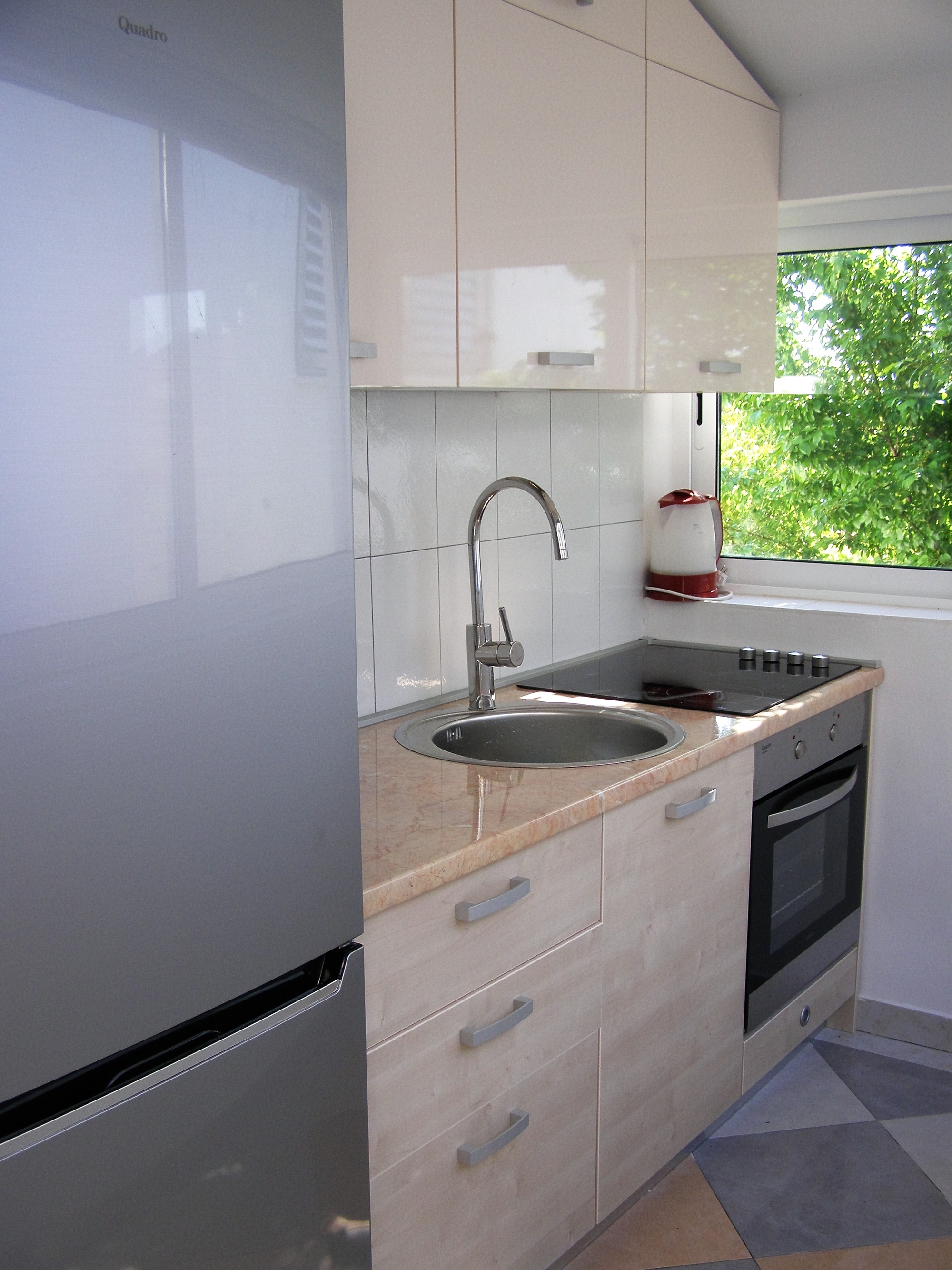 Apartment can accommodate 6 guests. Beds are situated in 2 sleeping rooms, but also in the living room, within 59m2. Guests can use a private terrace to enjoy the warm summer evenings. The apartment offers the sea view. Food can be prepared using barbecue which is shared with other guests too. INCLUDED IN THE PRICE: tourist tax, final cleaning, air-conditioning, central heating, parking, internet, laundry, baby cot, additional bed, iron, ironing board, hairdryer, portable barbecue, sunshade, sunchairs. OPTIONAL ADDITIONAL COSTS: boat (€60.00 per night), boat mooring (€25.00 per night). The availability of additional services for your chosen dates of stay, as well as their prices (if none are listed) must be checked ahead of time. Any additional services not shown in the price calculation are payable directly to the property owner and only if used by the visitor. Discounts to the base price: free day 28=25 (for stays of 28 days or more, we give you 3 days free of charge for the stay until 31122026).
