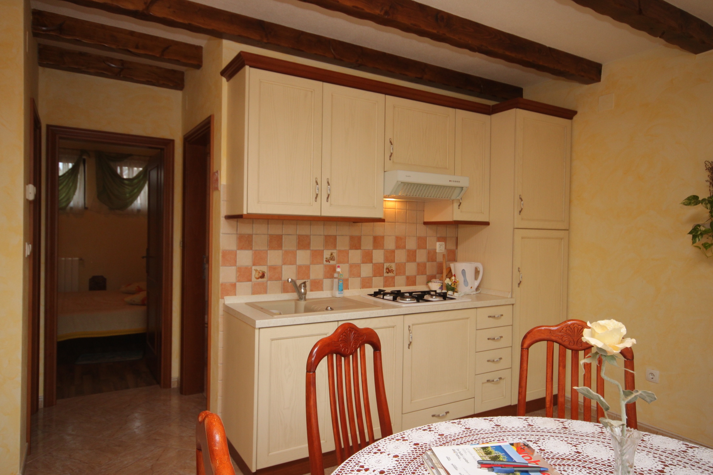 Apartment can accommodate 5 guests. Beds are situated in 1 sleeping rooms, but also in the living room and dining room, within 41m2. Guests can use a private terrace to enjoy the warm summer evenings. Food can be prepared using barbecue which is shared with other guests too. INCLUDED IN THE PRICE: tourist tax, final cleaning, air-conditioning, parking, internet, hairdryer, portable barbecue. OBLIGATORY ADDITIONAL COSTS: short stay fee (surcharge depending on a number of booked nights: 30% - 1, 20% - 2, 10% - 3). OPTIONAL ADDITIONAL COSTS: central heating (€5.00 per night). The availability of additional services for your chosen dates of stay, as well as their prices (if none are listed) must be checked ahead of time. Any additional services not shown in the price calculation are payable directly to the property owner and only if used by the visitor. Discounts to the base price: free day 14=13 (for reservations of 14 or more days you get one free day for the stay until 31122026).