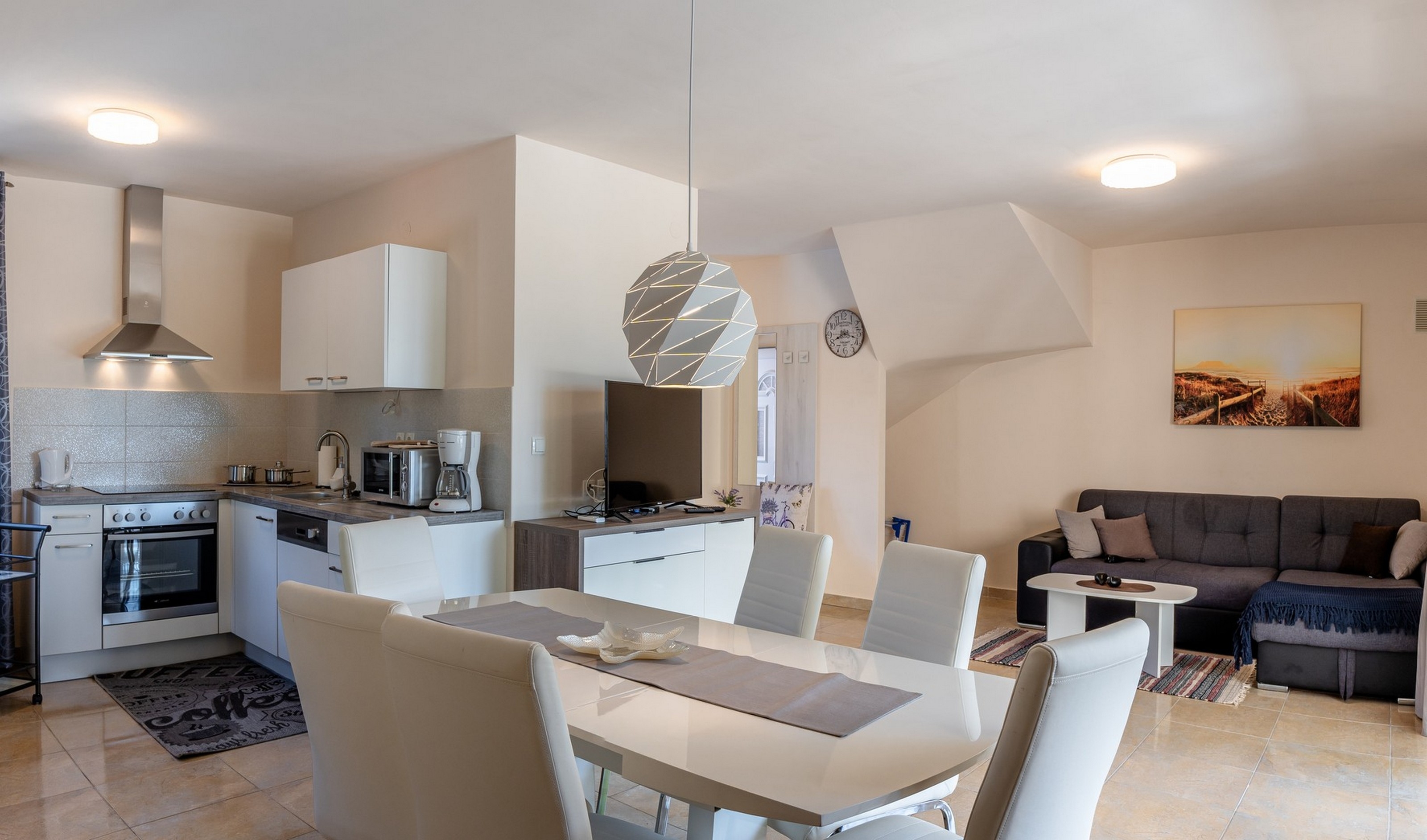 Apartment can accommodate 6 guests. Beds are situated in 3 sleeping rooms, within 67m2. Guests can use a private terrace to enjoy the warm summer evenings. The apartment offers the sea view. Food can be prepared using barbecue which is shared with other guests too. INCLUDED IN THE PRICE: tourist tax, final cleaning, air-conditioning, parking, internet, iron, ironing board, hairdryer. The availability of additional services for your chosen dates of stay, as well as their prices (if none are listed) must be checked ahead of time. Any additional services not shown in the price calculation are payable directly to the property owner and only if used by the visitor.