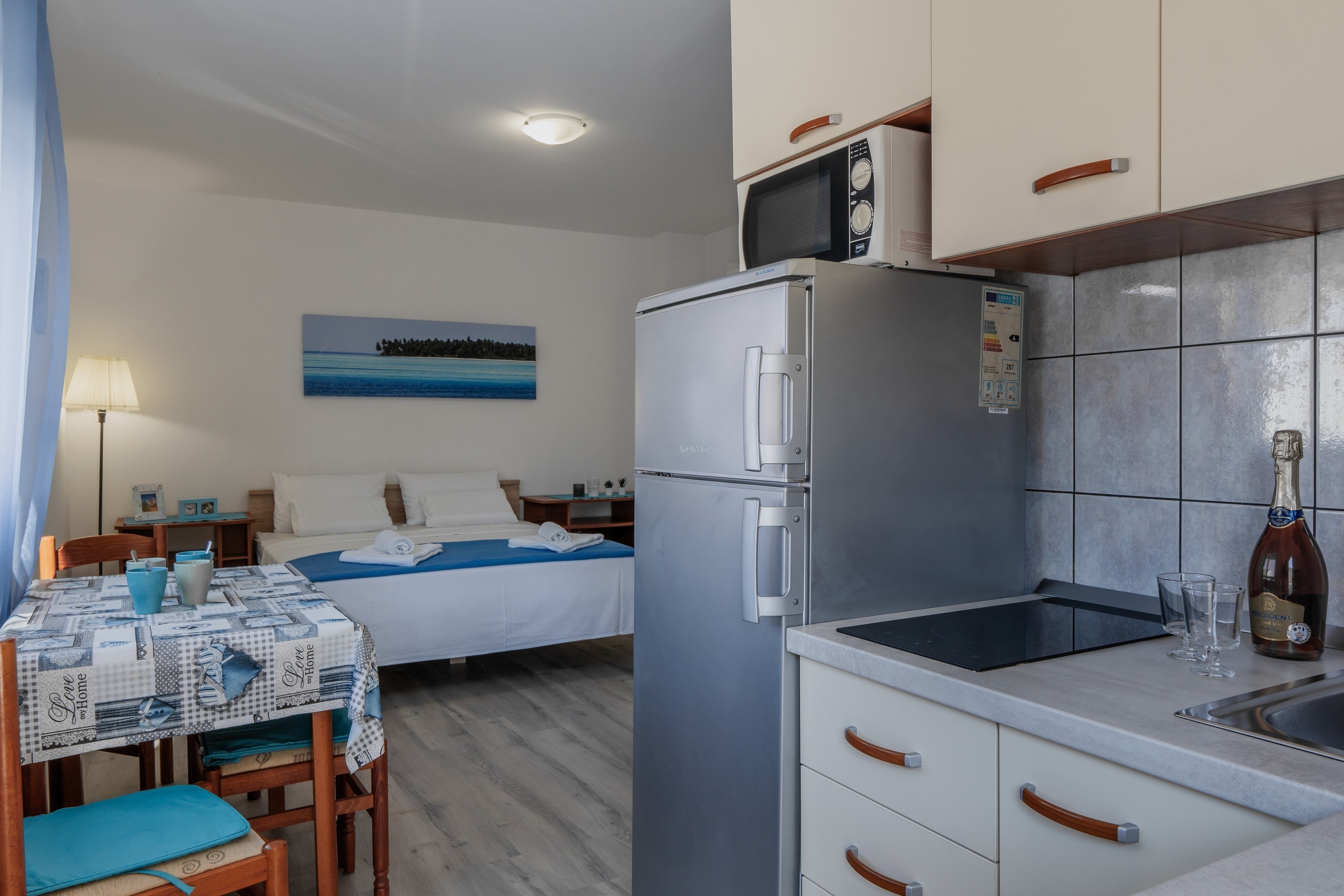 Apartment can accommodate 4 guests. Beds are situated in 1 sleeping rooms, but also in the living room, within 45m2. Reserved accommodation unit has a shared terrace. INCLUDED IN THE PRICE: tourist tax, final cleaning, air-conditioning, parking, internet, hairdryer. The availability of additional services for your chosen dates of stay, as well as their prices (if none are listed) must be checked ahead of time. Any additional services not shown in the price calculation are payable directly to the property owner and only if used by the visitor.