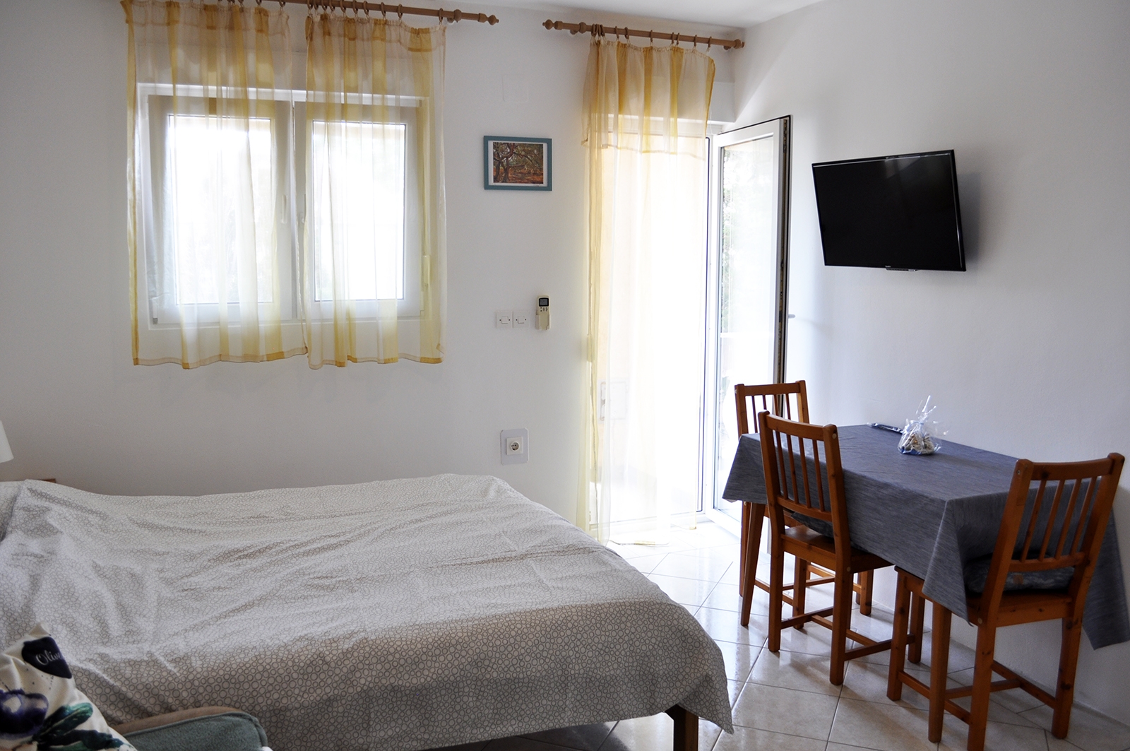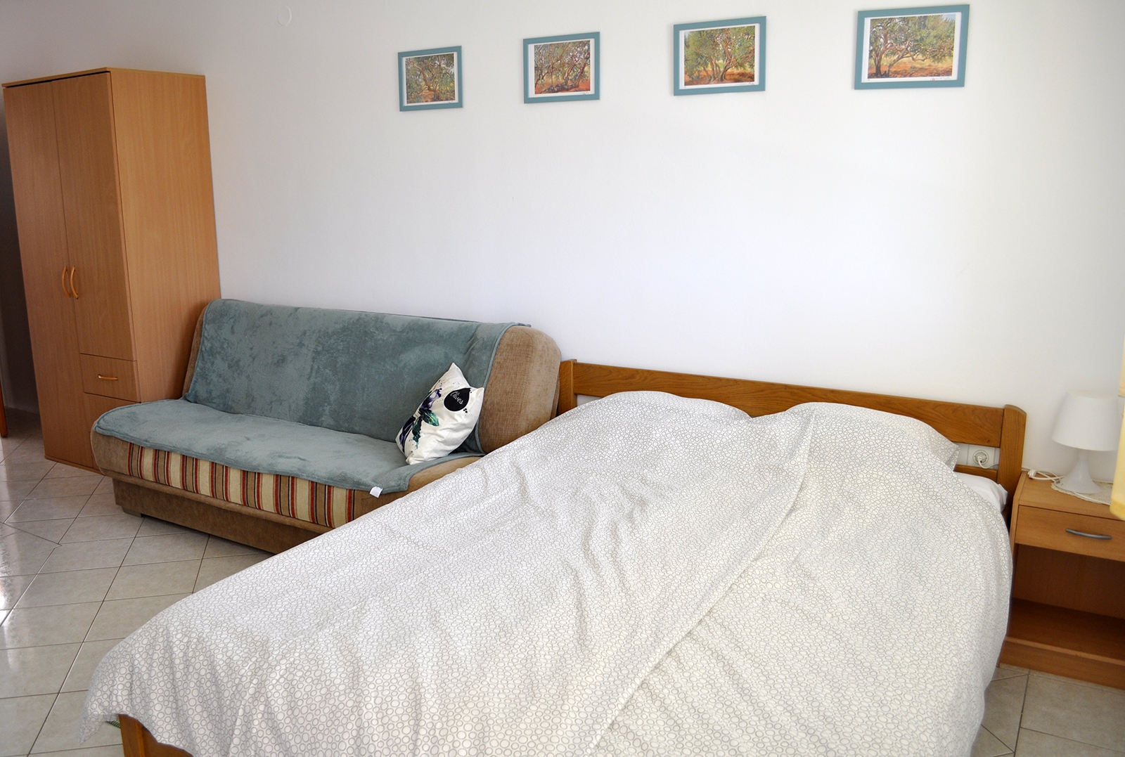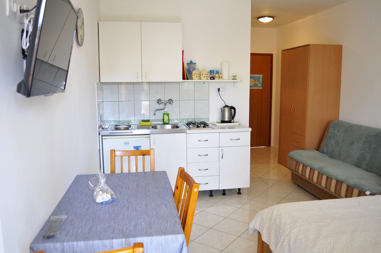 Studio flat can accommodate 3 guests. Beds are situated in living room, within 23m2. Guests can use a private balcony to enjoy the warm summer evenings. Food can be prepared using barbecue which is shared with other guests too. This accommodation unit welcomes pets at no additional costs. INCLUDED IN THE PRICE: tourist tax, final cleaning, air-conditioning, parking, internet, pets. OBLIGATORY ADDITIONAL COSTS: short stay fee (surcharge depending on a number of booked nights: 30% - 1, 20% - 2, 10% - 3). The availability of additional services for your chosen dates of stay, as well as their prices (if none are listed) must be checked ahead of time. Any additional services not shown in the price calculation are payable directly to the property owner and only if used by the visitor.