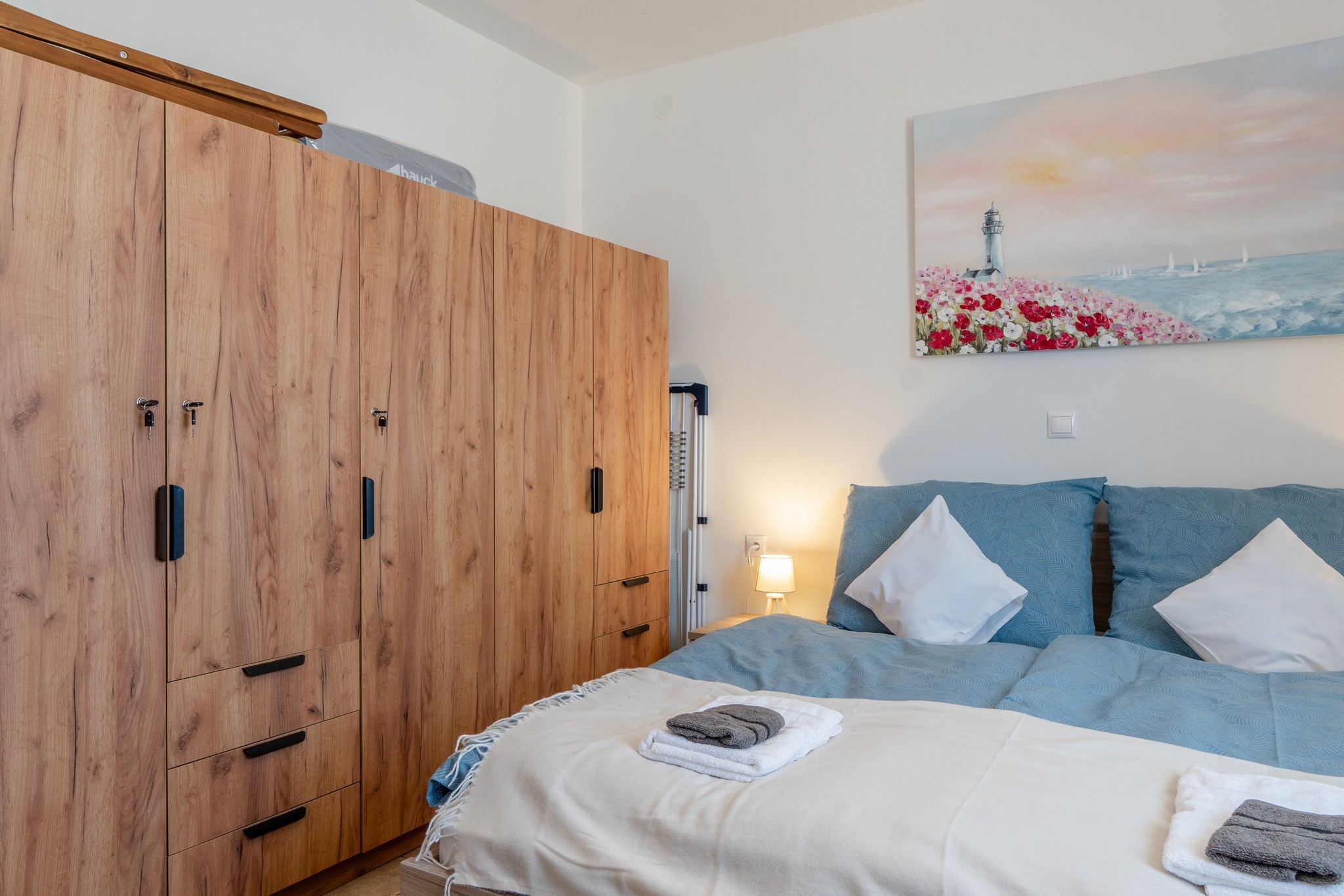 Apartment can accommodate 7 guests. Beds are situated in 3 sleeping rooms, but also in the living room, within 59m2. Guests can use a private balcony to enjoy the warm summer evenings. The apartment offers the sea view. Food can be prepared using barbecue which is shared with other guests too. INCLUDED IN THE PRICE: tourist tax, final cleaning, air-conditioning, parking, internet, iron, ironing board, hairdryer. The availability of additional services for your chosen dates of stay, as well as their prices (if none are listed) must be checked ahead of time. Any additional services not shown in the price calculation are payable directly to the property owner and only if used by the visitor.