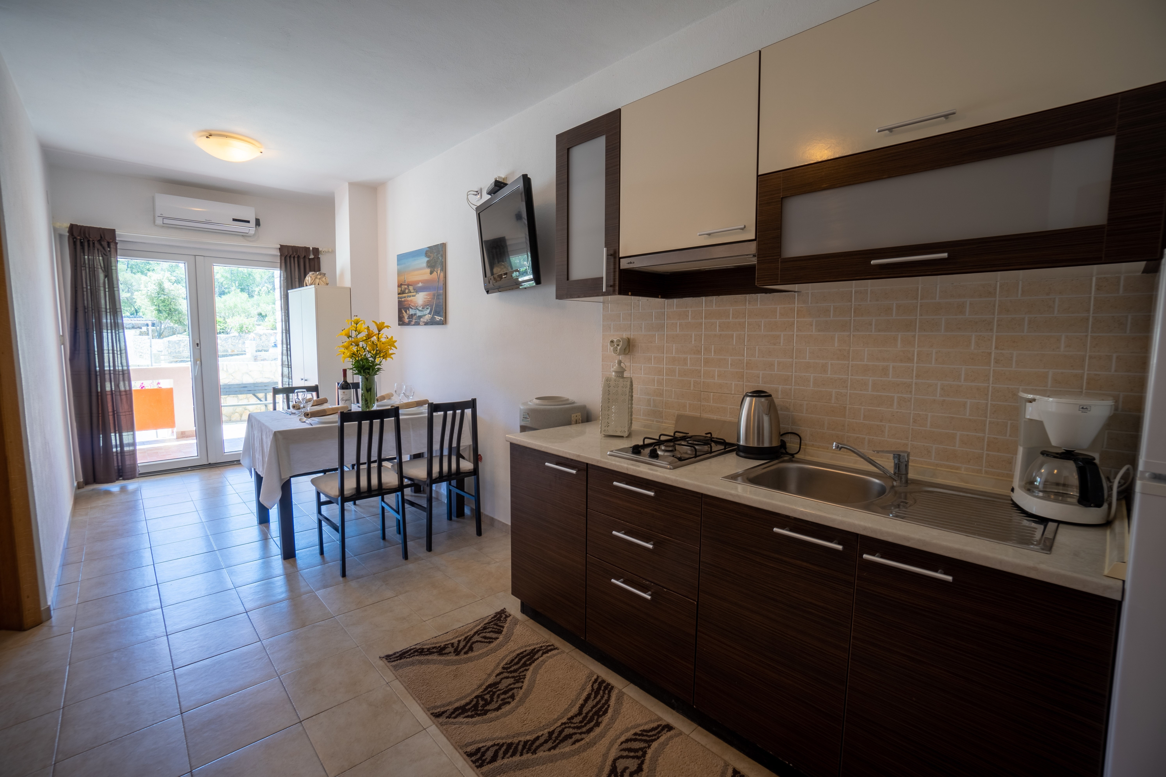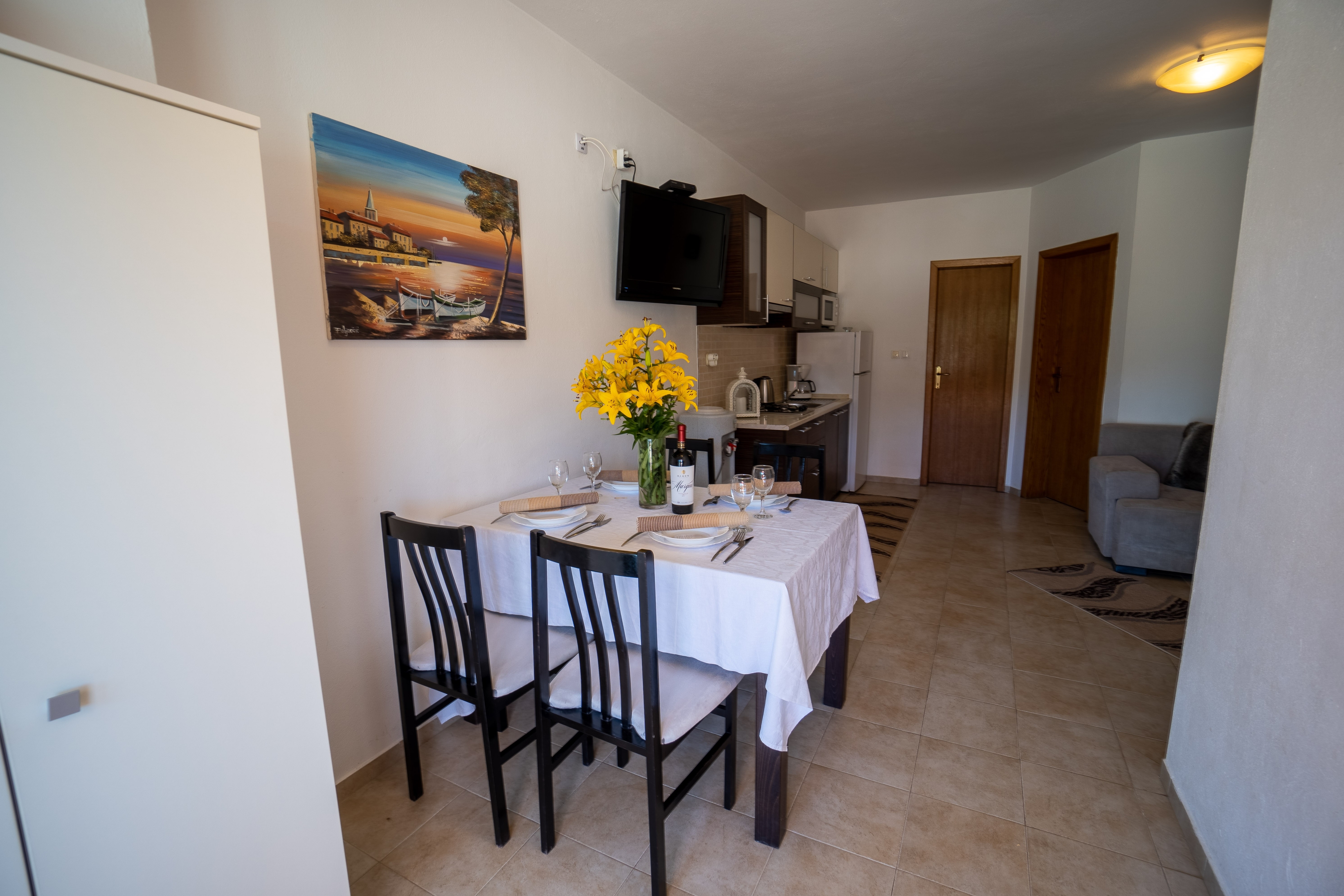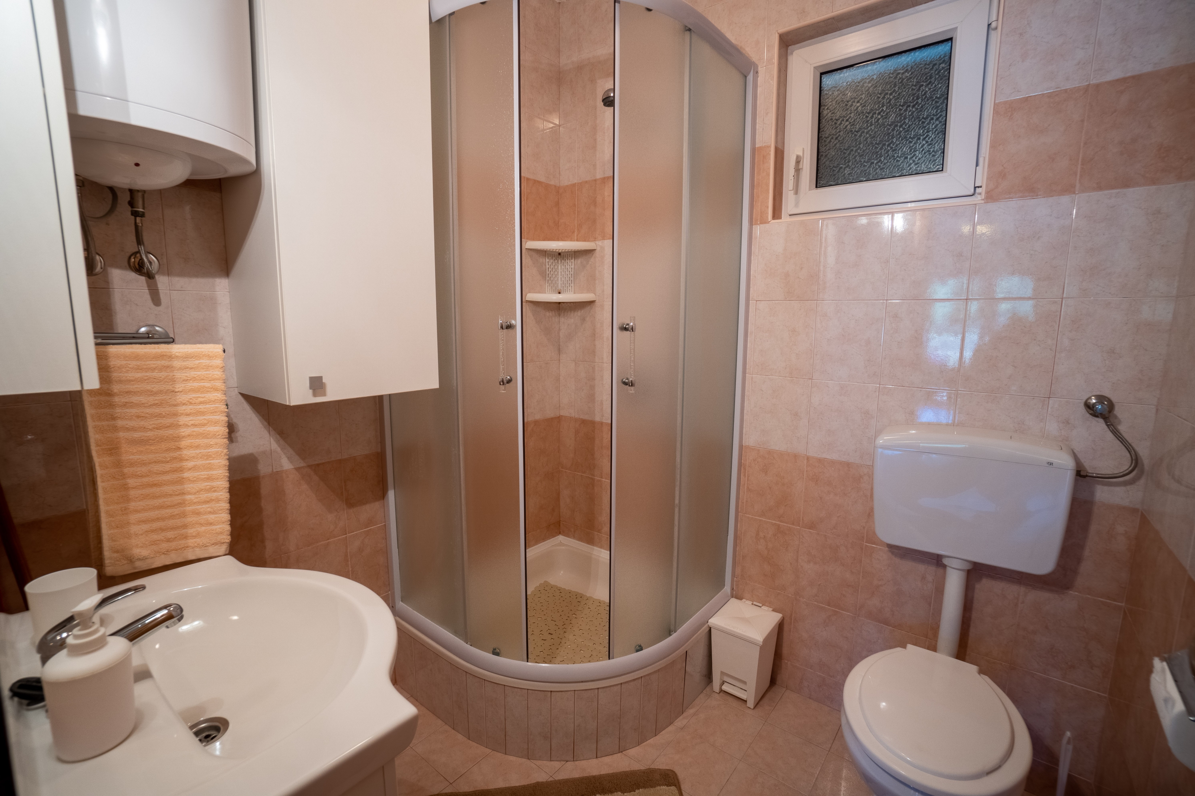 Apartment can accommodate 5 guests. Beds are situated in 2 sleeping rooms, but also in the living room, within 52m2. Guests can use a private terrace to enjoy the warm summer evenings. The apartment offers the sea view. Food can be prepared using barbecue which is shared with other guests too. INCLUDED IN THE PRICE: tourist tax, final cleaning, air-conditioning, parking, internet, baby cot, hairdryer, sunshade, sunchairs. OBLIGATORY ADDITIONAL COSTS: short stay fee (surcharge depending on a number of booked nights: 30% - 1, 20% - 2, 10% - 3). The availability of additional services for your chosen dates of stay, as well as their prices (if none are listed) must be checked ahead of time. Any additional services not shown in the price calculation are payable directly to the property owner and only if used by the visitor.