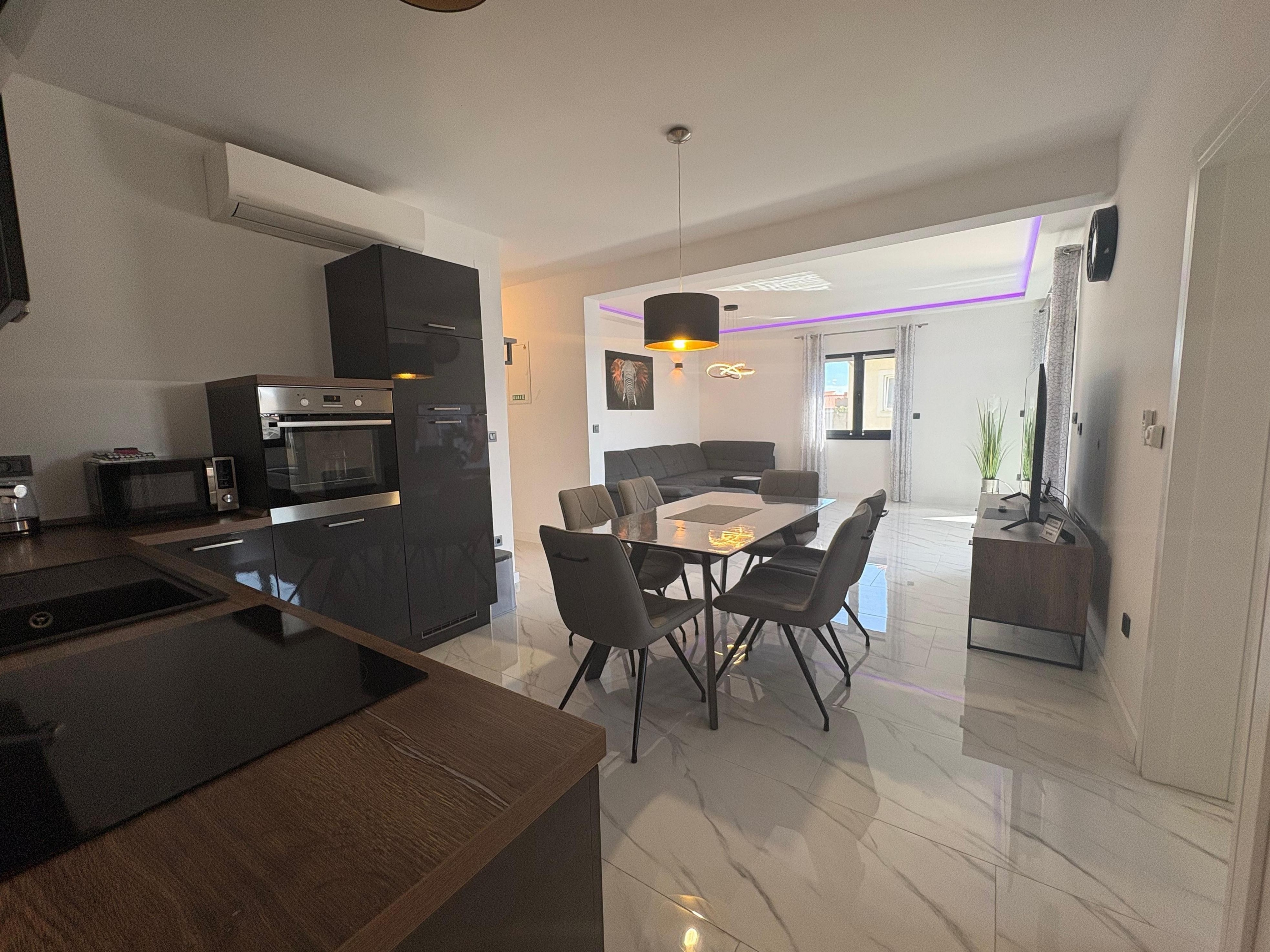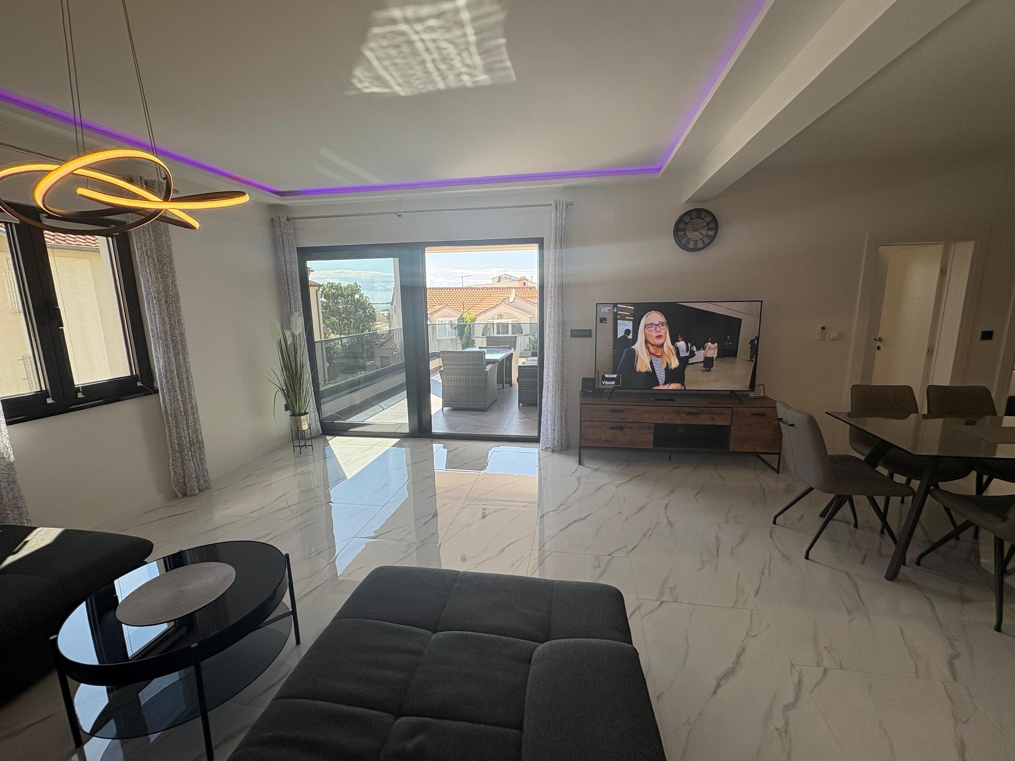 Apartment can accommodate 5 guests. Beds are situated in 2 sleeping rooms, but also in the living room, within 72m2. Guests can use a private terrace to enjoy the warm summer evenings. The apartment offers the sea view. Food can be prepared using barbecue which is shared with other guests too. INCLUDED IN THE PRICE: tourist tax, final cleaning, air-conditioning, central heating, parking, internet, laundry, baby cot, iron, ironing board, hairdryer. The availability of additional services for your chosen dates of stay, as well as their prices (if none are listed) must be checked ahead of time. Any additional services not shown in the price calculation are payable directly to the property owner and only if used by the visitor. Discounts to the base price: free day 14=13 (for reservations of 14 or more days you get one free day for the stay until 31122026).