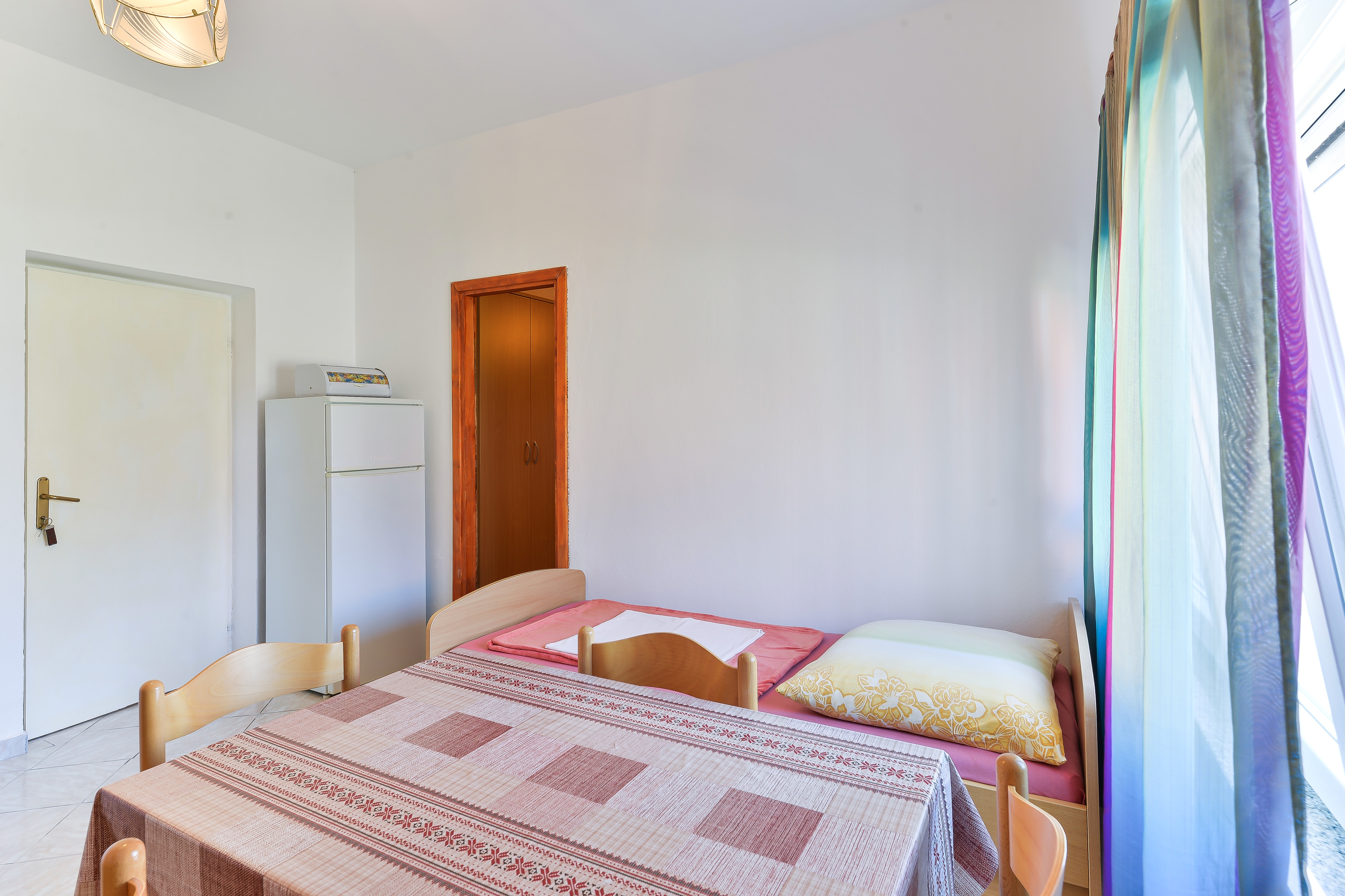 Apartment can accommodate 4 guests. Beds are situated in 1 sleeping rooms, but also in the dining room, within 27m2. Food can be prepared using barbecue which is shared with other guests too. This accommodation unit welcomes pets at an additional charge. Reserved accommodation unit has a shared terrace. INCLUDED IN THE PRICE: tourist tax, final cleaning, air-conditioning, parking, internet. OPTIONAL ADDITIONAL COSTS: pets (€5.00 per night). The availability of additional services for your chosen dates of stay, as well as their prices (if none are listed) must be checked ahead of time. Any additional services not shown in the price calculation are payable directly to the property owner and only if used by the visitor.