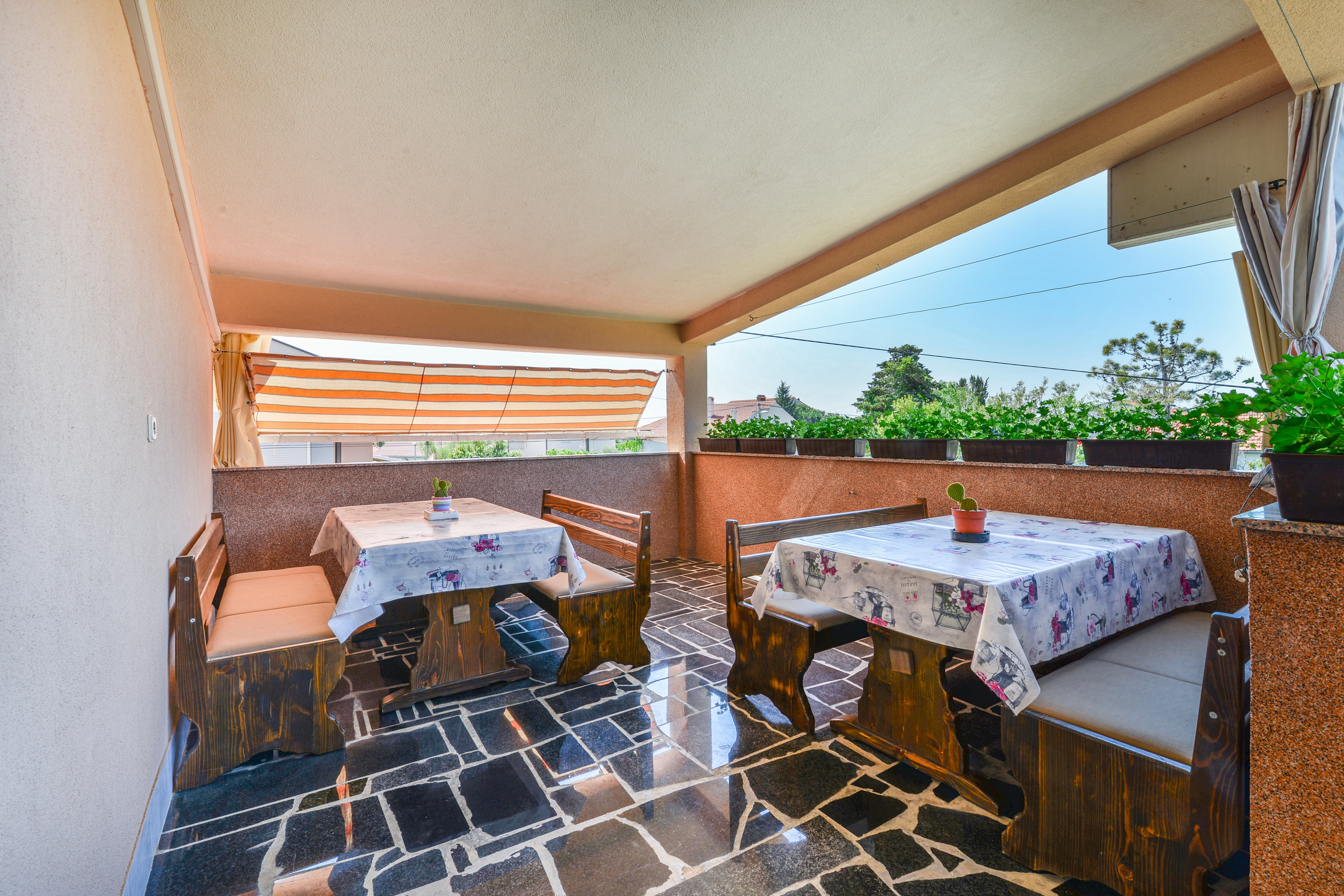 House 19555 in the town of Nin, Zadar - North Dalmatia has accommodation units of type Apartment (4) and is 200 m away from the sea. The nearest beach to this accommodation is a sand beach. Other guests will most likely be present in the house during your holiday. Your hosts will not be staying in the house during your holiday. The house owner is under no obligation to accept additional persons and pets that were not stated in the reservation request and it is necessary to report them in advance.AMENITIES Infield (Well-kept), Courtyard (250m2, Sitting area), Parking lot (Number of parking spaces: 4, Distance from the house: In the courtyard), Barbecue: shared, WiFi Internet LOCATION AND ACCESS Facility is situated near a local road Local road between the property and the beach Car access possible: Yes The facility is situated in quiet surroundings The facility is partly surrounded by vegetation DISTANCES Sea: 200 m Beach: 1.3 km Center: 17 km Shop: 250 m Urgent medical care: 500 m Pharmacy: 450 m Exchange office: 350 m ATMBank machine: 300 m Tourist info: 350 m Airport: 26 km Farmers market: 450 m