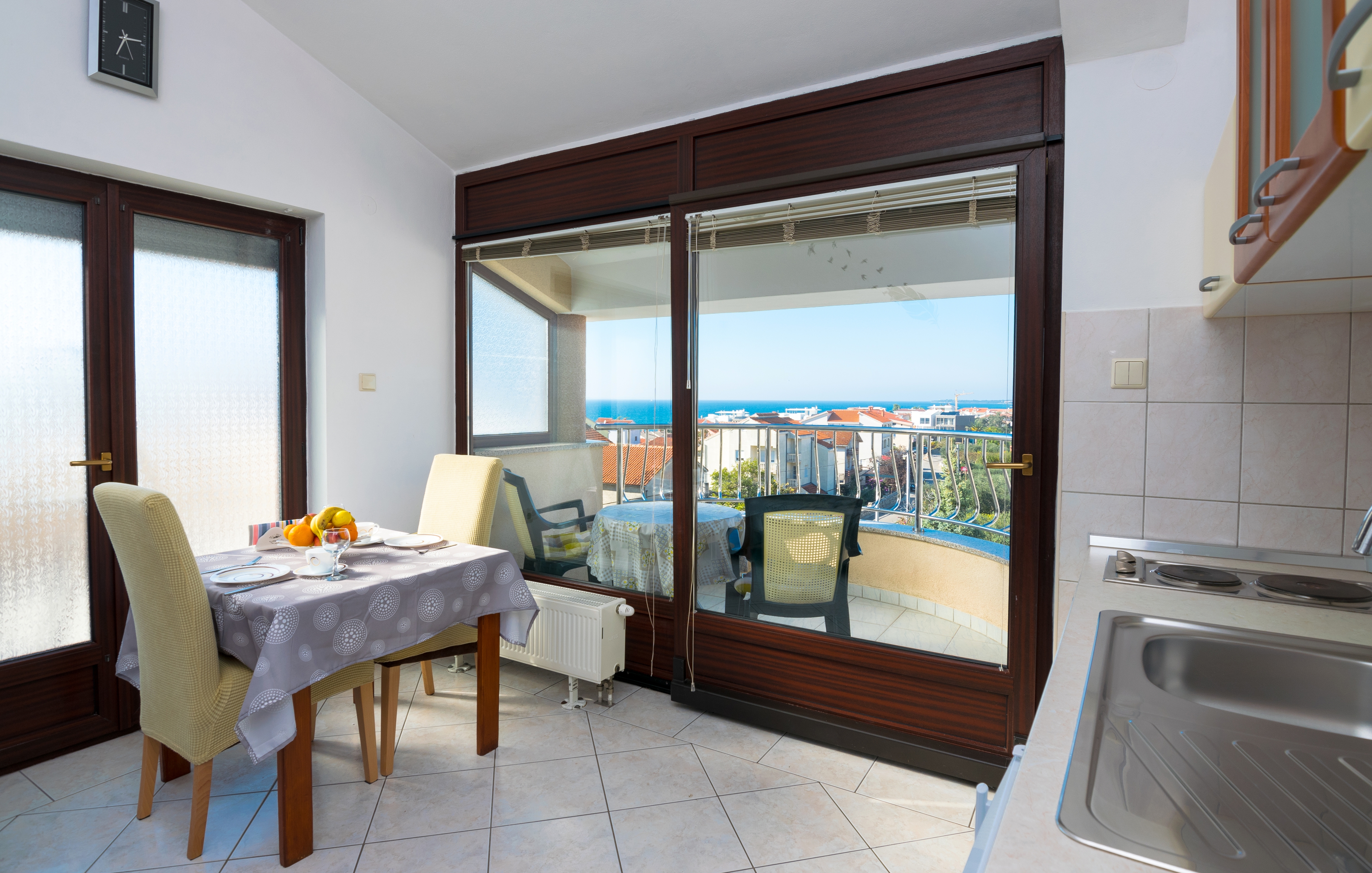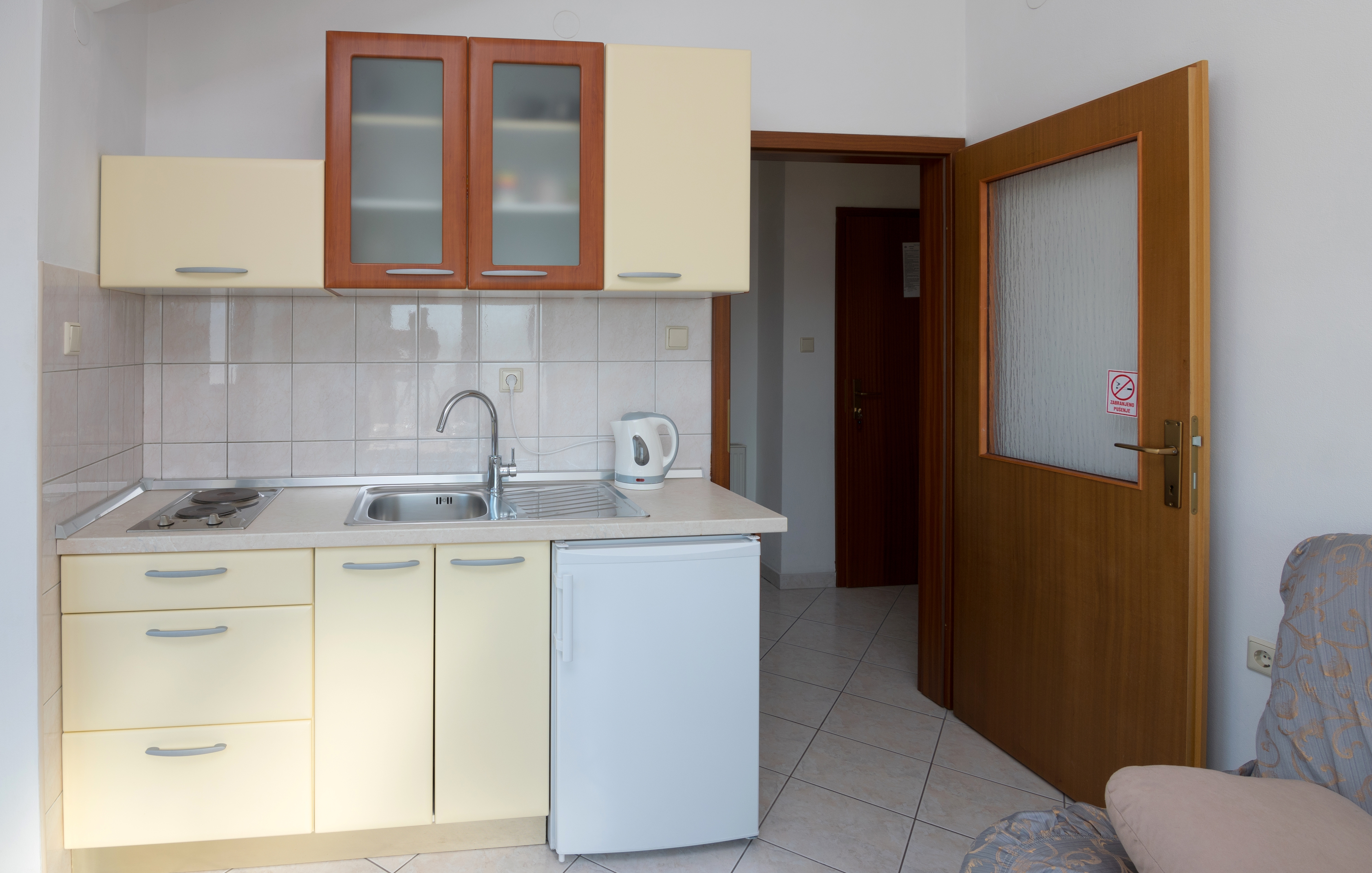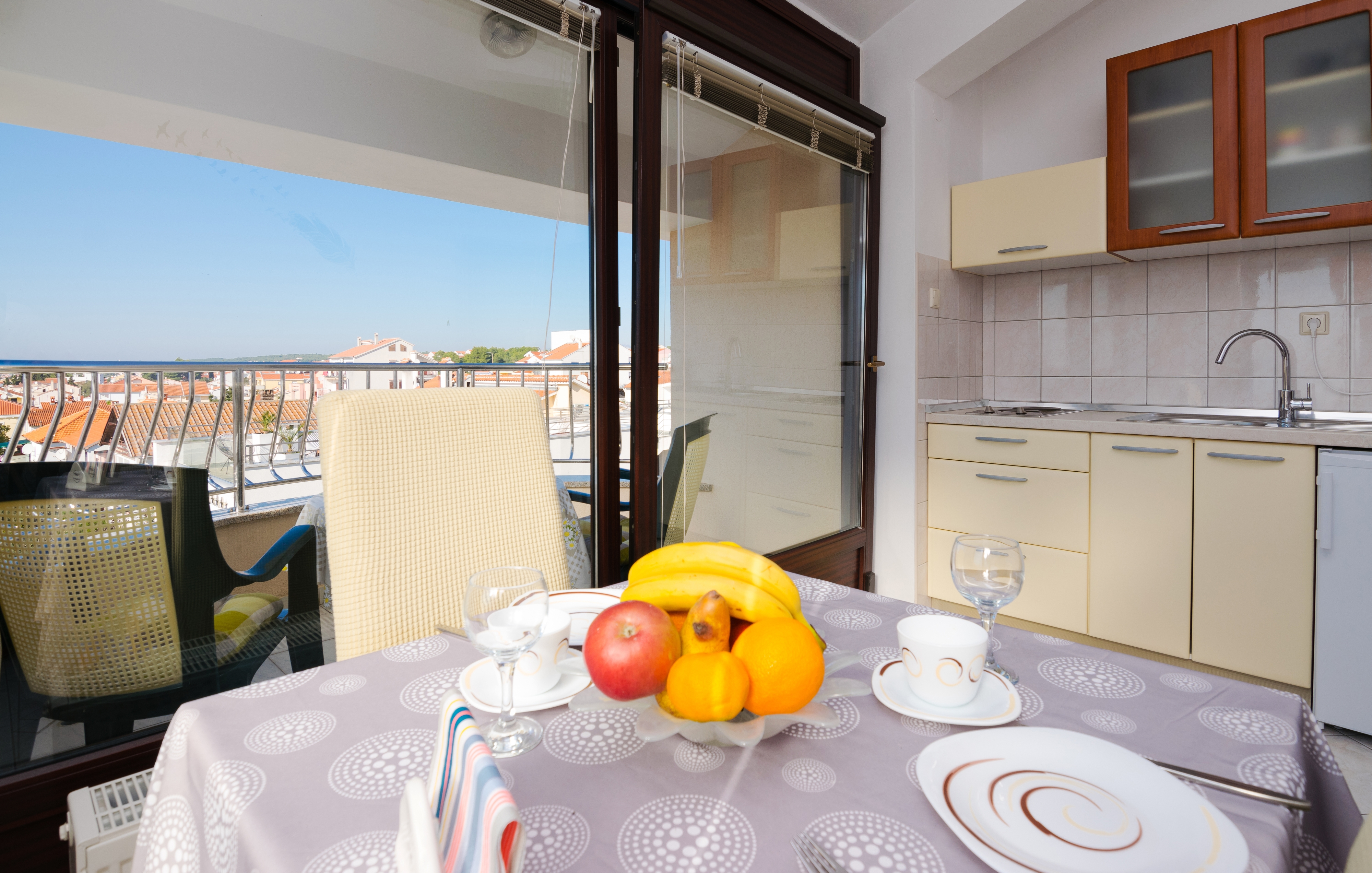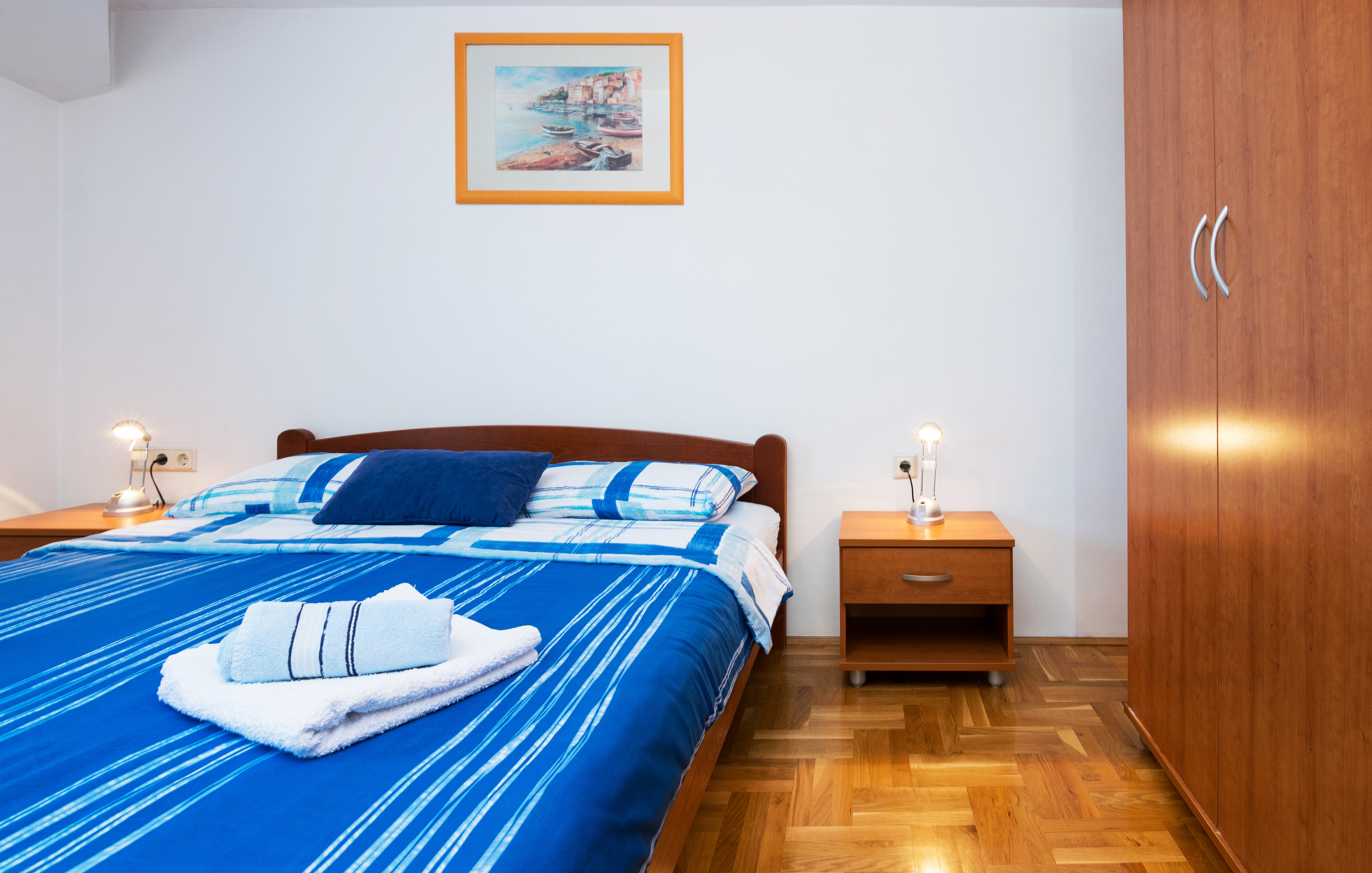 Apartment can accommodate 2 guests. Beds are situated in 1 sleeping rooms, within 30m2. Guests can use a private terrace to enjoy the warm summer evenings. The apartment offers the sea view. Food can be prepared using barbecue which is shared with other guests too. INCLUDED IN THE PRICE: tourist tax, final cleaning, air-conditioning, parking, internet, iron, ironing board, hairdryer. OBLIGATORY ADDITIONAL COSTS: short stay fee (surcharge depending on a number of booked nights: 30% - 1, 20% - 2, 10% - 3). OPTIONAL ADDITIONAL COSTS: laundry (€5.00 washing). The availability of additional services for your chosen dates of stay, as well as their prices (if none are listed) must be checked ahead of time. Any additional services not shown in the price calculation are payable directly to the property owner and only if used by the visitor.